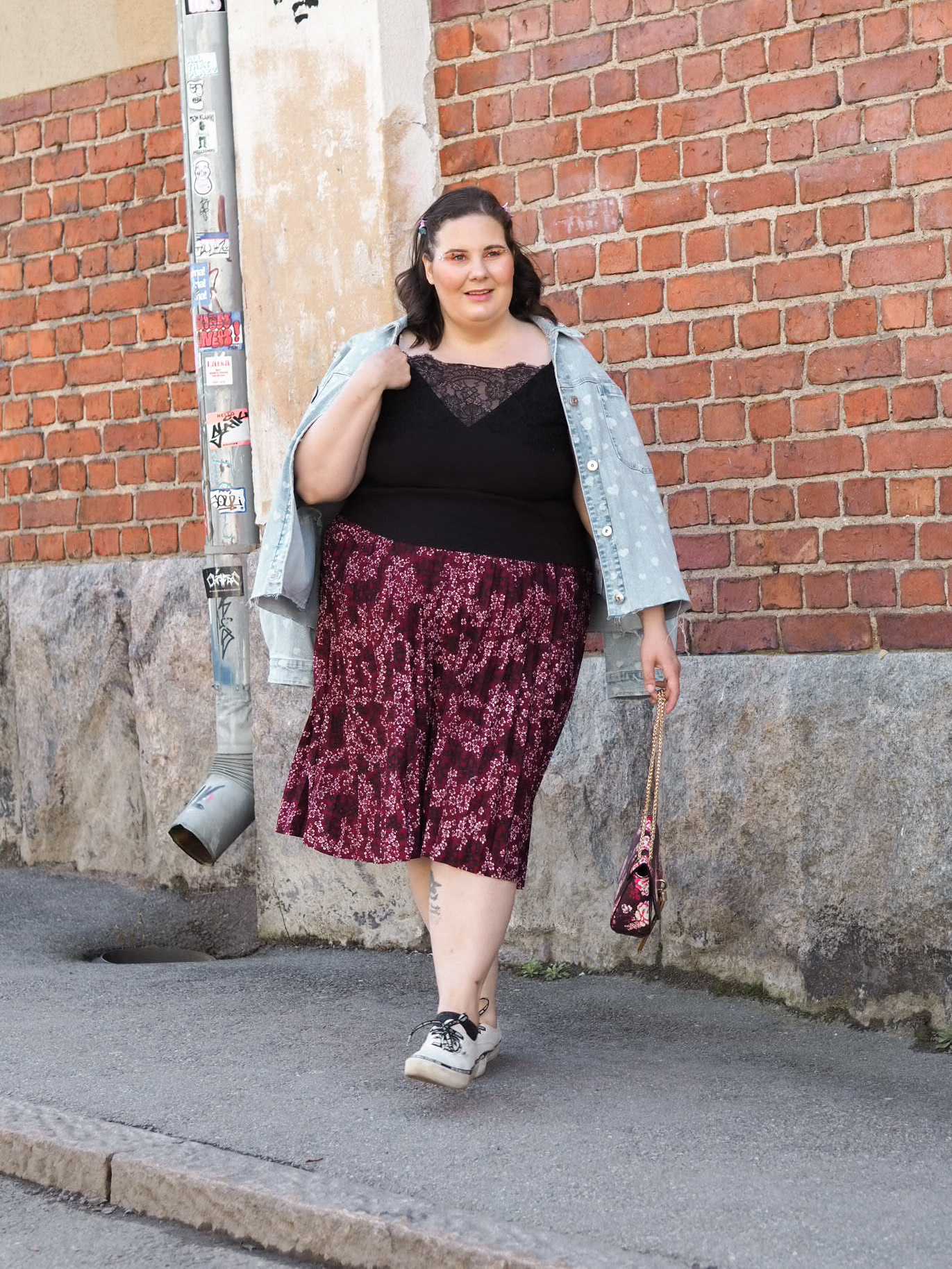Asu on mielestäni söpö. Järjestin Instagramissa pienen äänistyksen omasta vappuasustani. Tämä asu voitti, sillä erotuksella, että varsinaisessa asussa oli mukana neule. Mutta tuolloin oli sen verran lämmintä, että pärjäsin ihan vain topilla. Mikä oli aivan ihanaa. En malta odottaa, että tämä viime päivien koleus helpottaa.