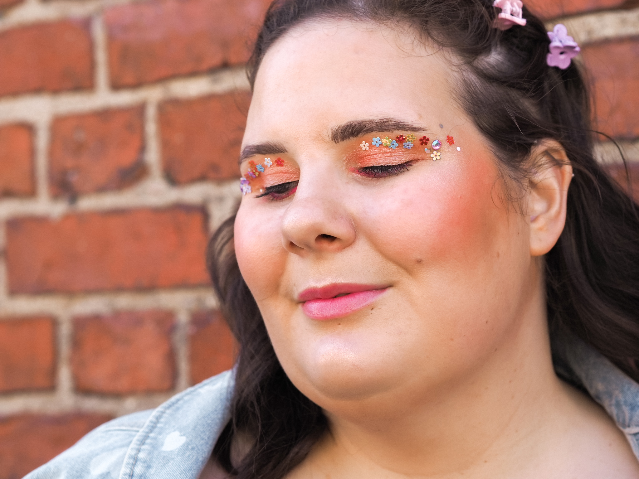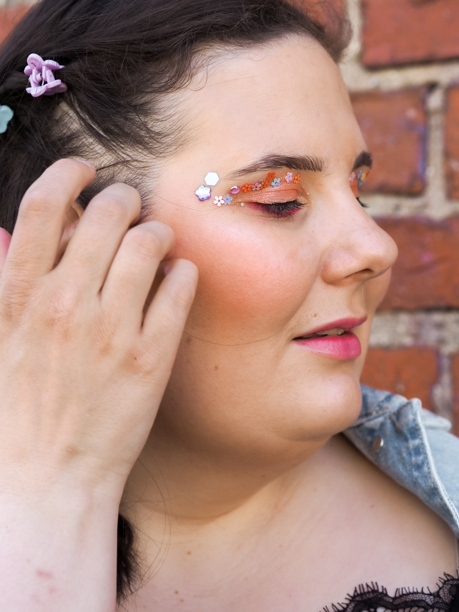 Olin saanut tähän vappumeikkiin inspiraation Instagramissa @beautjuuliful-tililtä. Minulla on meikkaamsen suhteen melko tarkka oma tyyli, jota harvoin lähden muuttelemaan, mutta joskus on kiva repäistä. Tästä syystä päädyin liimailemaan kukkia luomiini. Oli kiva pitkästä aikaa leikitellä meikillä.