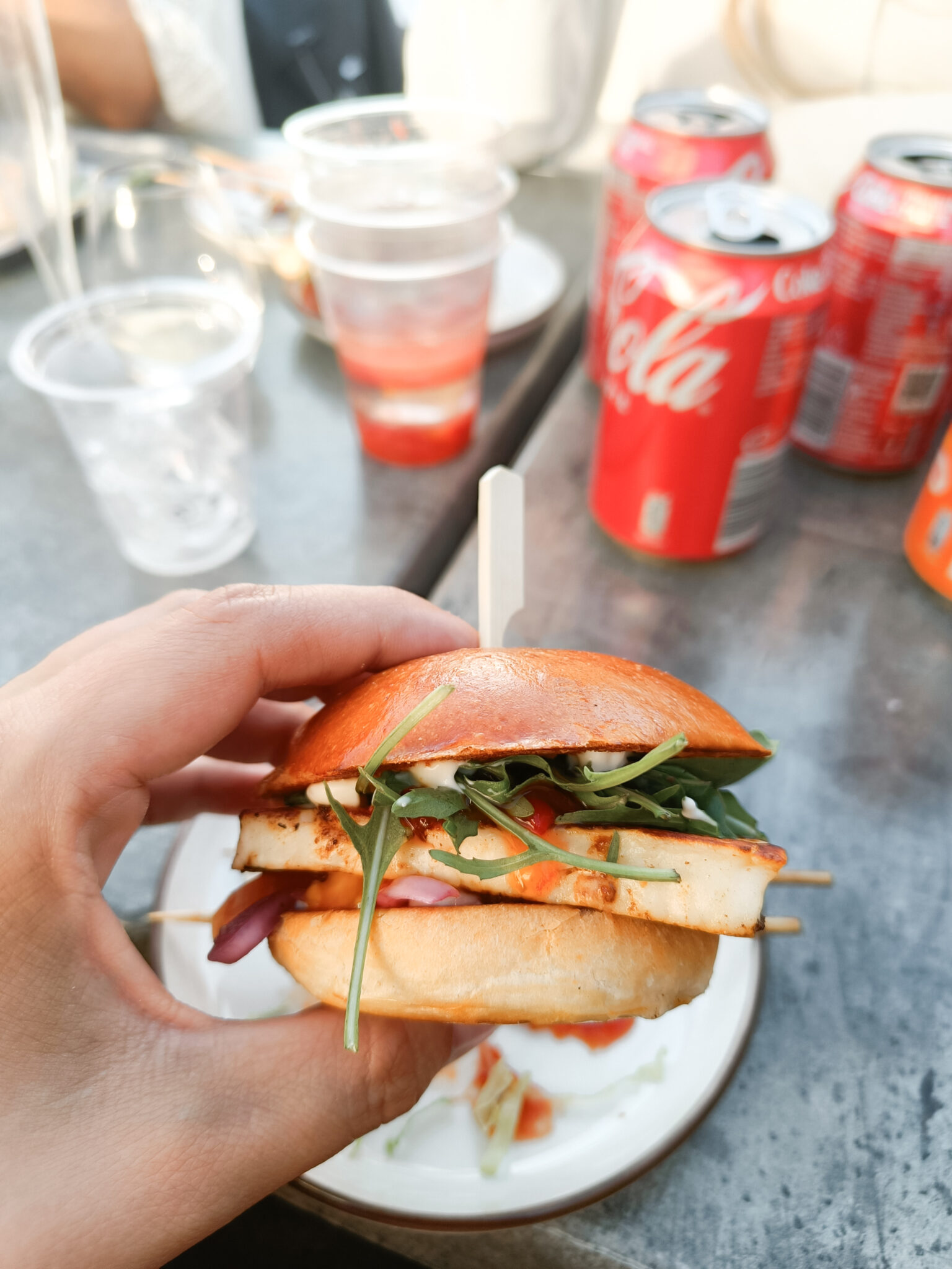 Ruoka oli myös hyvää. Saatiin maistella kaikkien ravitoloiden herkkuja. Omaksi suosikikseni nousivat Momotokon antimet. Mikä tuskin on mikään yllätys, sillä rakastan aasialaista ruokaa. Mutta Naughty BRGR:n halloumi hanpurilainen ja Slicemongerin juustopizza olivat myös todella hyviä. Halloumburgerissa oli suolaisen juuston kaverina sweet chilikastiketta, mikä oli mieltön yhdistelmä. Kokeilten tätä myös kotona. Ja Slicemongerin juustopizzan päällä oli juuston lisäksi hunajaa. Yhdistelmä saattaa kuulostaa perverssiltä, mutta se oli oikeasti tosi hyvä. Suosittelen testaamaan.