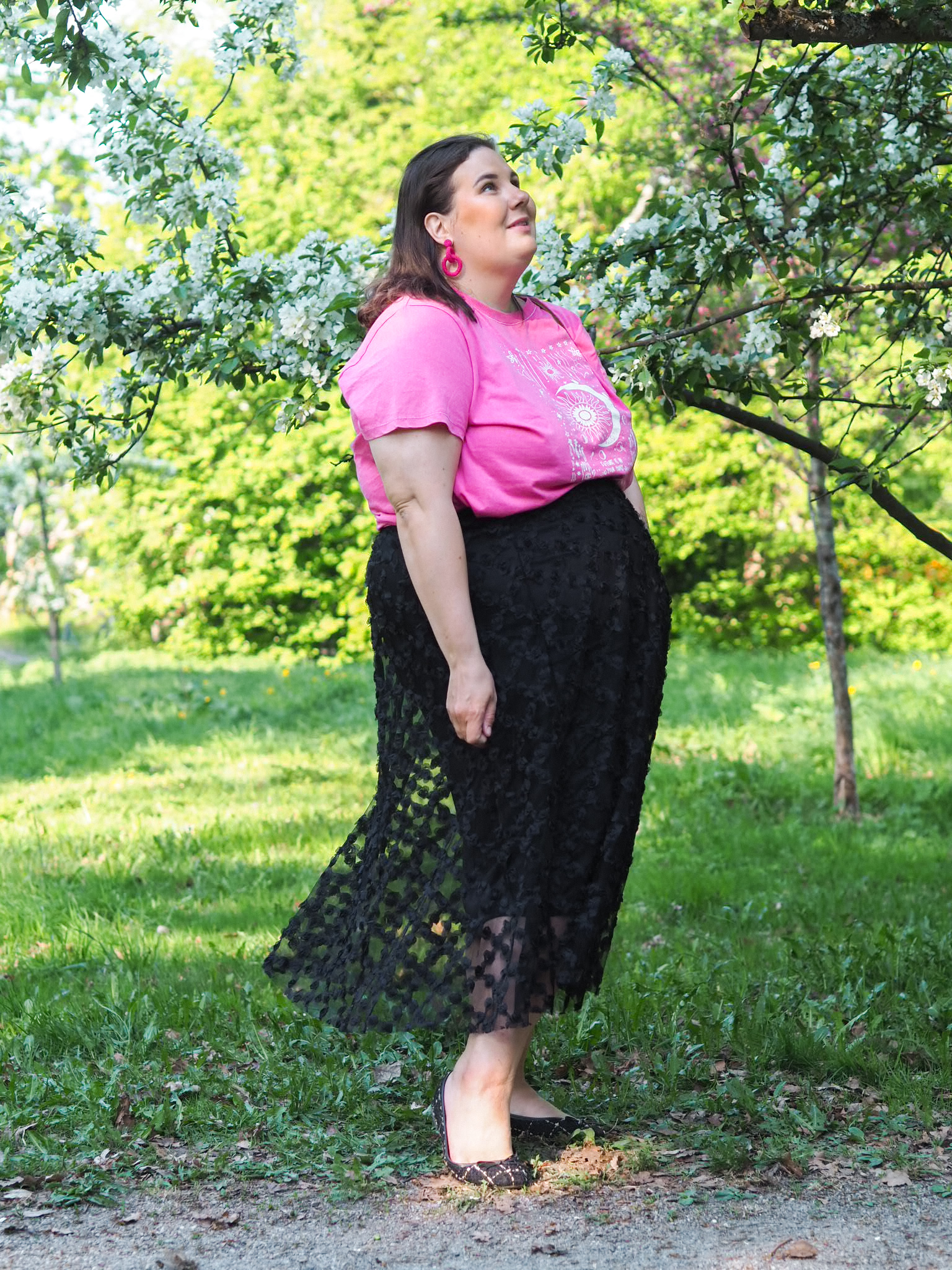 Minä en ole mikään festari-ihminen. En ole koskaan käynyt festareilla, enkä vieläkään sinne hingu. Silti minulta löytyy vaatteita, jotka menisivät ihan hyvin festarivaatteista. Yksi on tämä hame, jonka bongasin Ellokselta tänä keväänä. Olen katsellut vastaavan tyyppisiä hameita jo ennen tätä. Eli siis läpikuultavaa tyllihametta. Ihastuin tähän sen erilaisuuden vuoksi. Pidän valtavasti noista pienistä ruusukkeista. En ole kovin montaa vastaava nähnyt.
