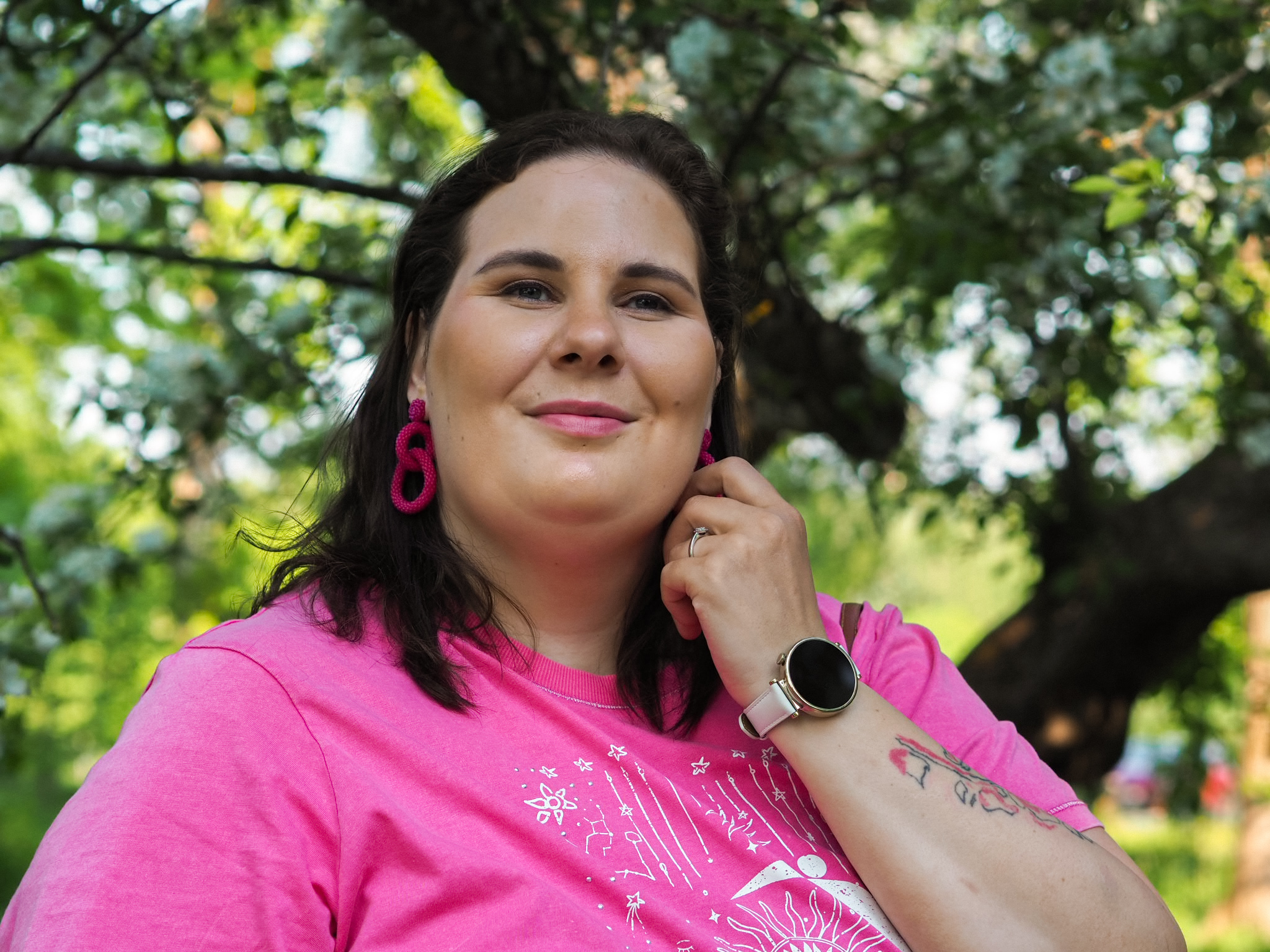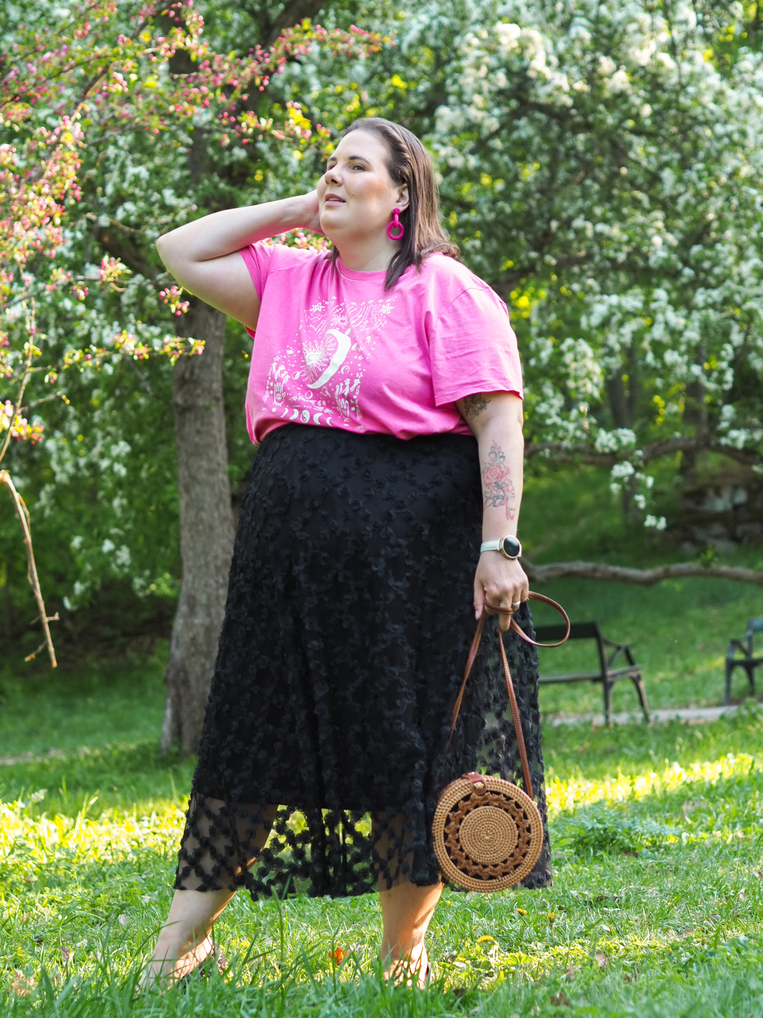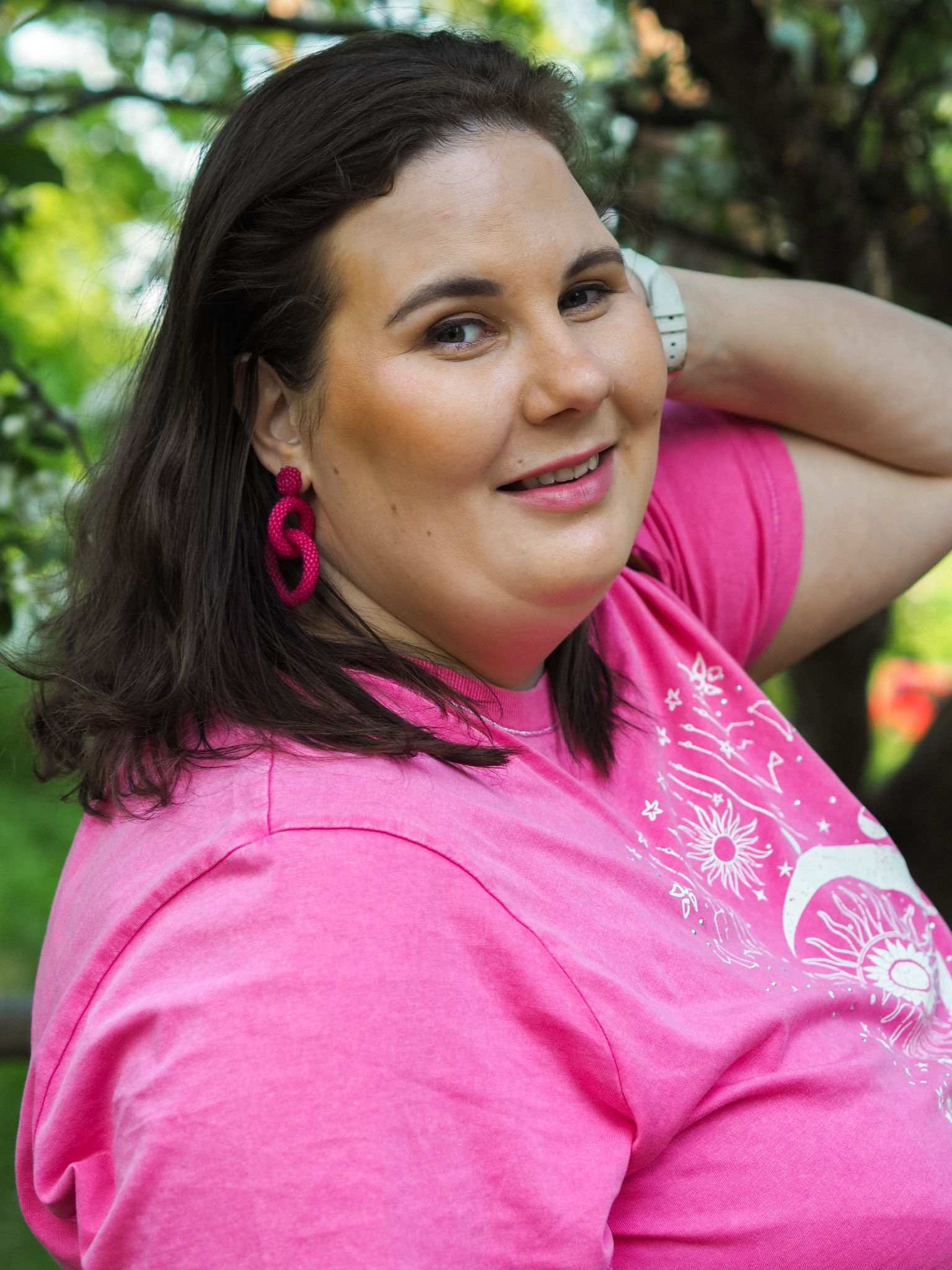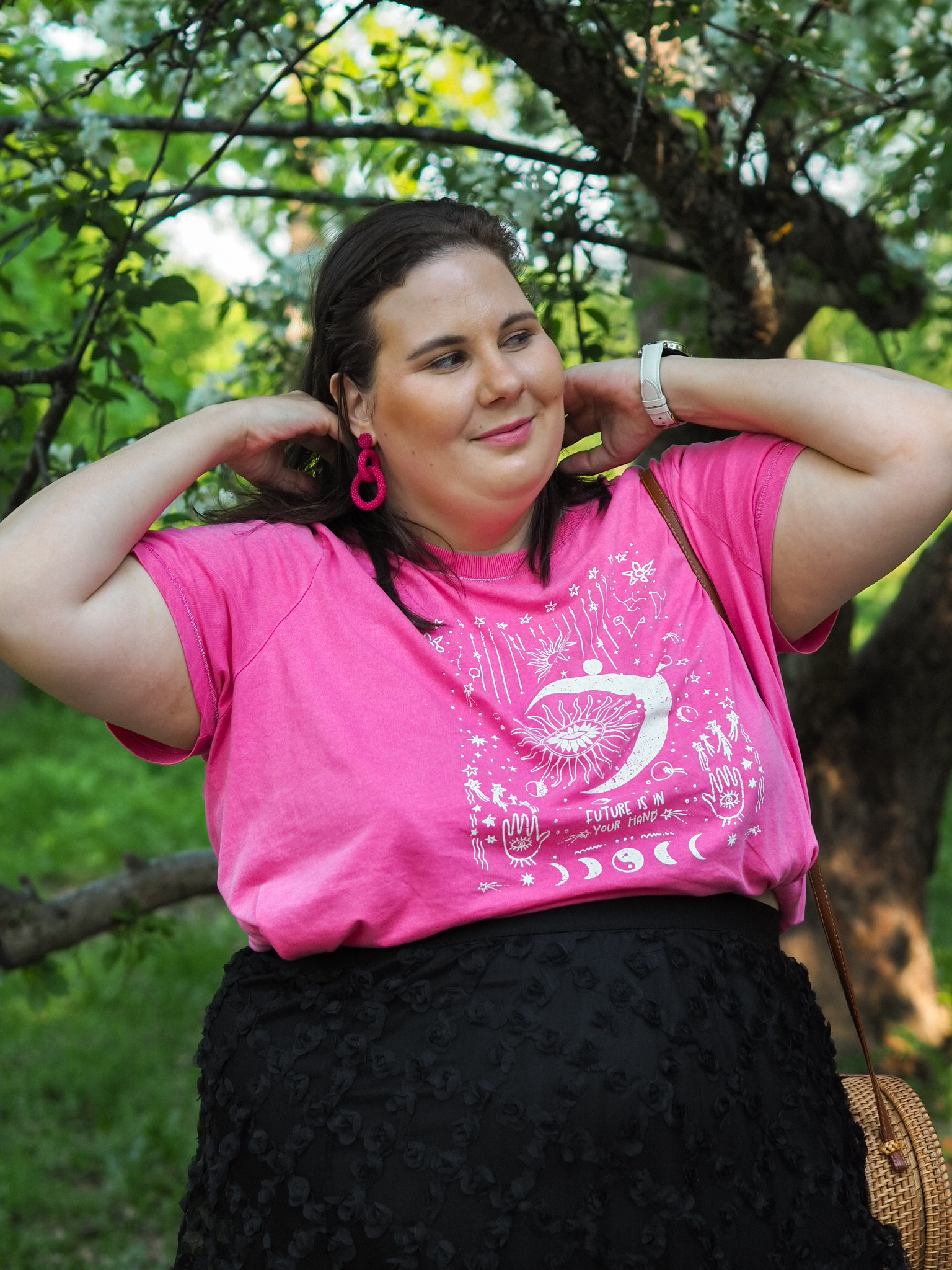 Tuo pinkki t-paita tuntuu itseasiassa jopa vähän villiltä itselleni. Mutta pidän siitä ja sen mallista. Tämä on samaa mallia, kuin blogissa aiemmin nähty sininen t-paita*. Kuten sanoin, rakastan tätä mallia. Kunpa tätä saisi myös yksivärisenä. Pidän myös valtavasti paidan noita-teemaisesta kuvioinnista. Huomaan erilaisten henkisten juttujen kiinnostavan jonkin verran ja tämä sopii teemaan.