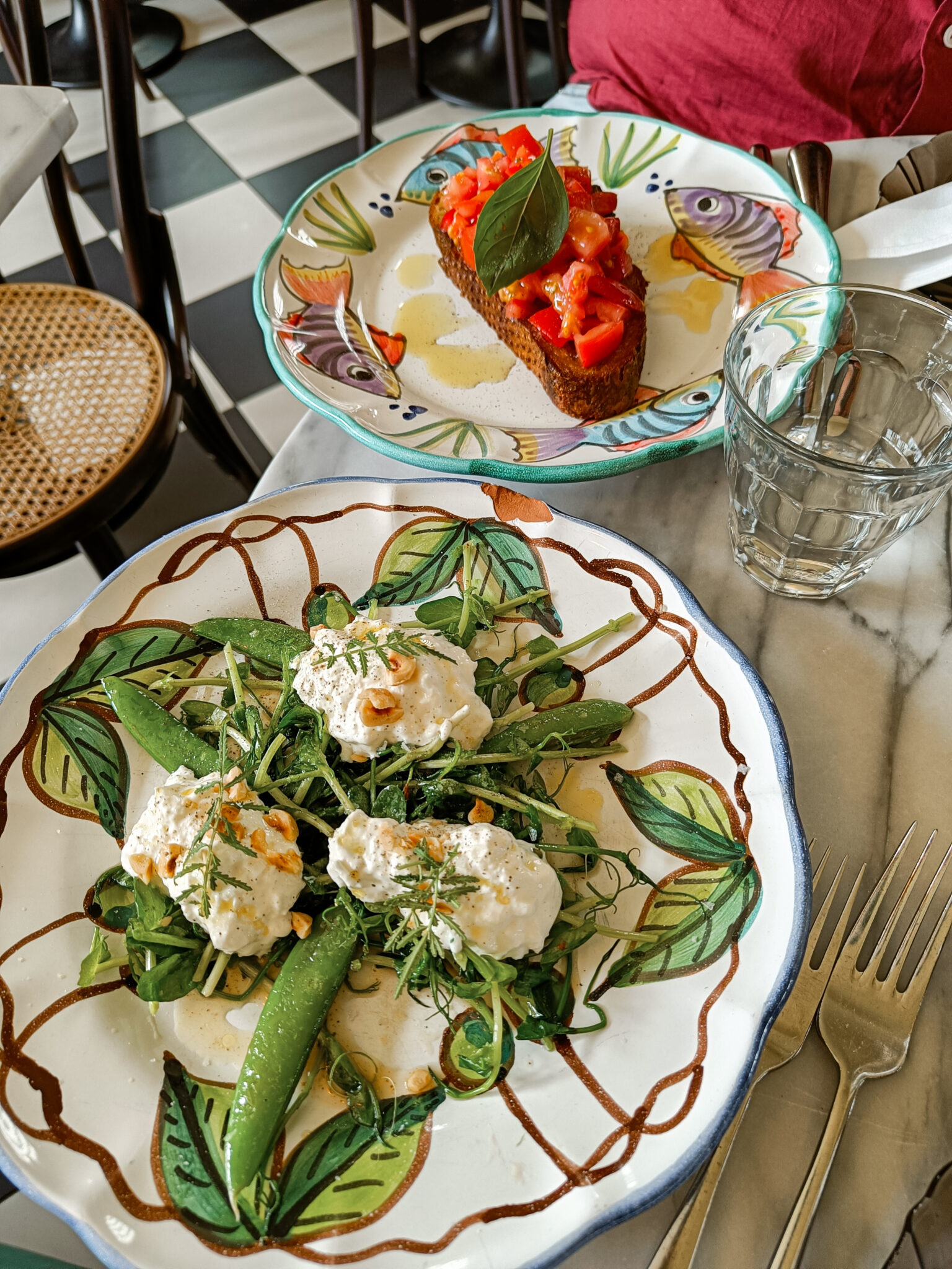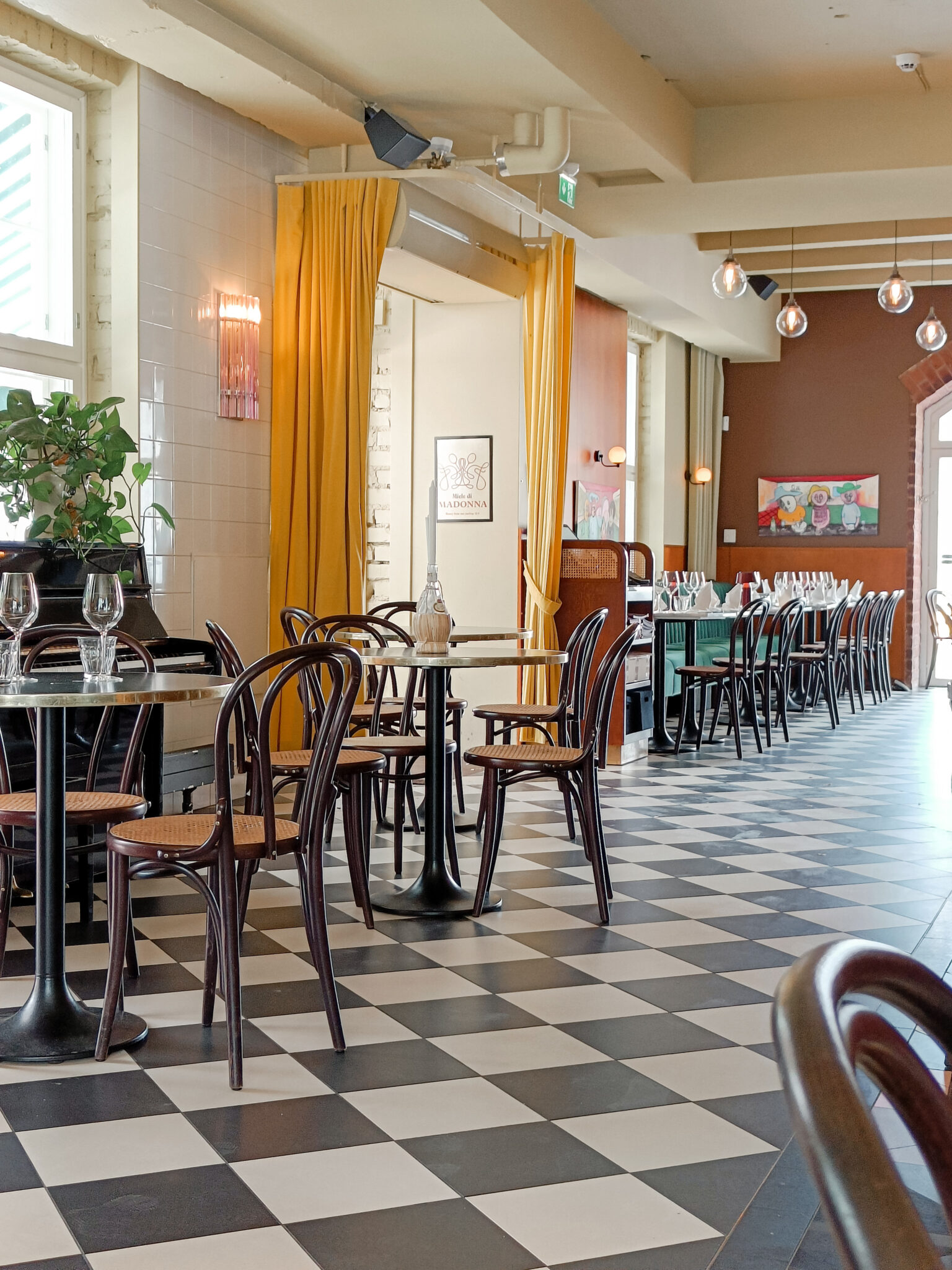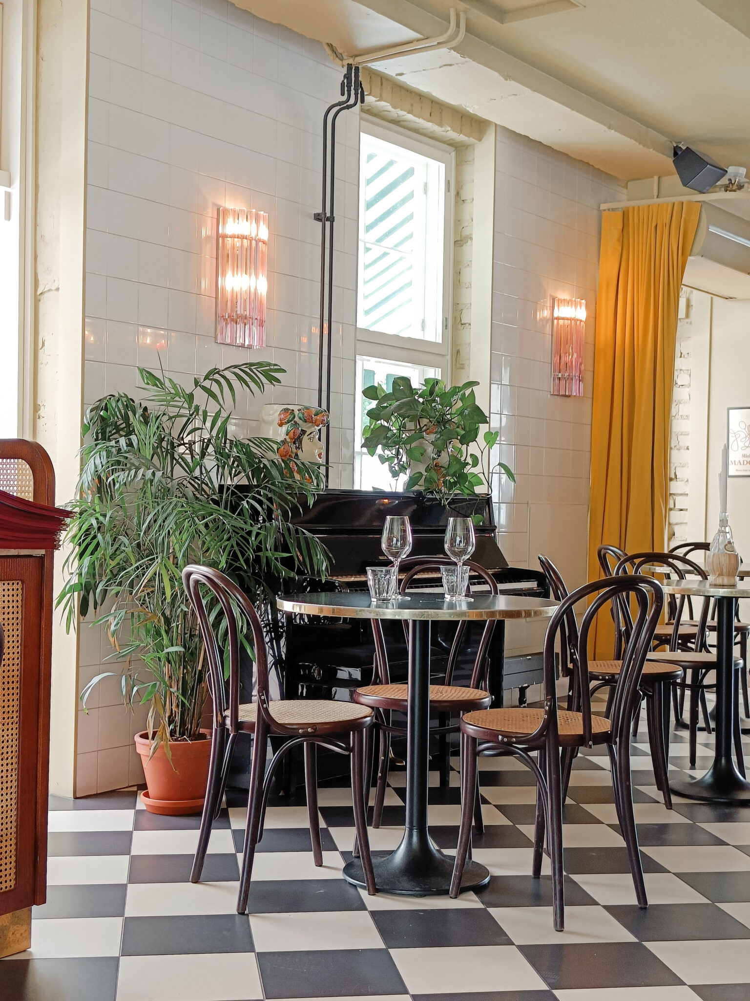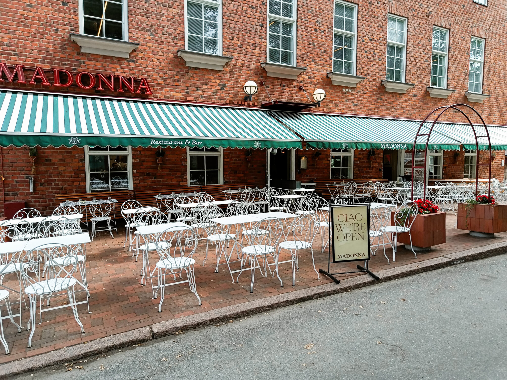 Noholla oli melkoinen lista ravintoloita, joista valita. Saatiin karsittua itse vaihtoehdot muutamaan ja ystävien suosituksesta päädyttiin lopulta Madonnaan. Meille sanottiin, että siellä on rento, miellyttävä tunnelma ja ruoka on hyvää. Madonna on viihtyisä italialainen ravintola, joka on vähän piilossa. Miljöö ylitti meidän odotukset. Ravintola oli kuin minimatka Italiaan. Minä ihastelin illan aikana ravintolan sisustusta ja astioita, Totte katseli silmä kovana drinkkien tekoa. Sain samalla huomautuksia siitä, miten drinkit tehdään.