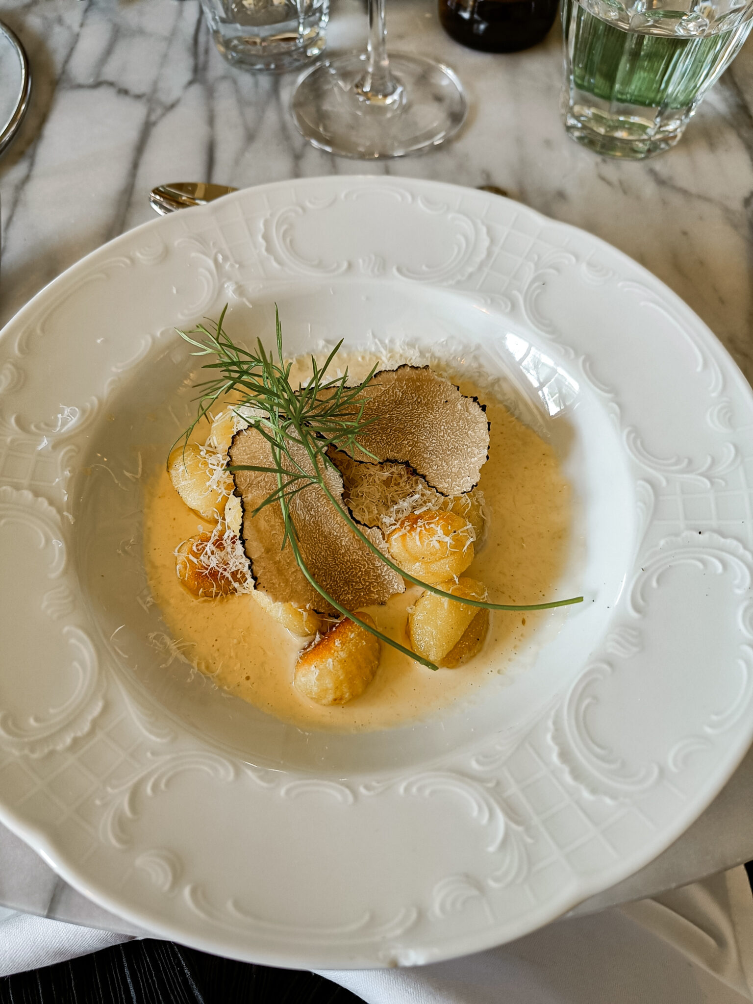 Päädyttiin tilaamaan listalta Bella Notte menu kahdelle. Menu sisälsi burrattaa ja bruchettaa, pääruuaksi pizzaa ja gnoccheja, sekä jälkiruuaksi gelattoa ja tiramisua. Ei ehkä oltaisi tilattu kovinkaan montaa näistä, mutta tässä ne tulivat menun mukana. Minä ihastuin burrataan ja gnocchi annokseen. Gnocchit olivat jotain uskomattoman hyvää. Olisin voinut syödä niitä huomattavasti enemmän. Sen lisäksi tilaan todella usein ravintolassa tiramisun ja täällä se oli aivan erityisen hyvää.