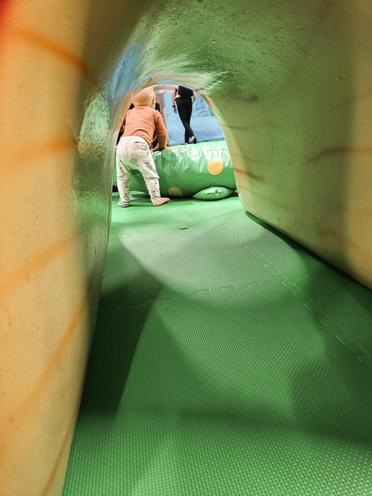 Onpa näihin viikkoihin mahtunut myös vauvan ensimmäinen HopLop reissukin. Toinen isoista sai kutsun synttäreille, jonne otin vauvan mukaan. Isompi lapsi viiletti tukka putkella kavereidensa kanssa ja minä hengailin vauvan kanssa pienten puolella. Reissu oli menestys. Alun jännityksen jälkeen hän purki palikkaseinää ja suhasi nauraen läpi tunneleista. Juhlahuoneessa hän konttasi pöydän alla puremassa ihmisiä varpaista. Tässä kohtaa itse kullakin oli naurussa pitelemistä. Mutta odotan kovasti, että tämä varpaiden puremis vaihe alkaisi mennä jo ohi.