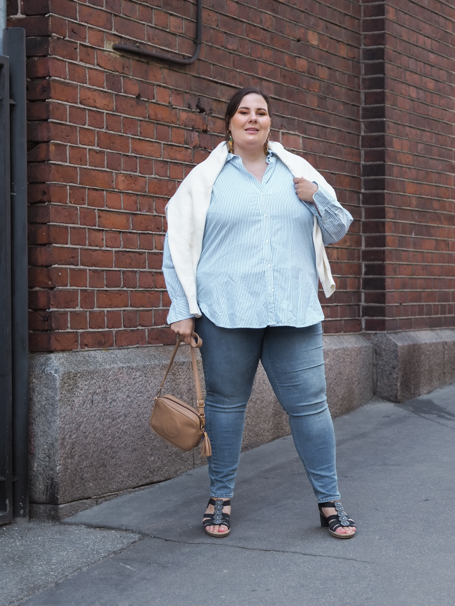 Tämä asu menee mittapuullani siihen klassiseen päähän. Viihdyn tässä todella hyvin. Ostin tuon paidan synnytyksen jälkeen, kun kaipasin vaatekaappiin lisää kauluspaitoja, jotka palvelivat sitä imetyksen alkutaivalta. Toki katsoin sellaisia vaatteita, joita käyttäisin myös ihan muutenkin ja tämä on kyllä sellainen. Yhdistän kauluspaidat kaikkein mieluiten hameisiin tai sitten farkkuihin, kuten tässä. Ja siis, mihin milleniaali pillifarkuistaan pääsisi? No ei mihinkään.