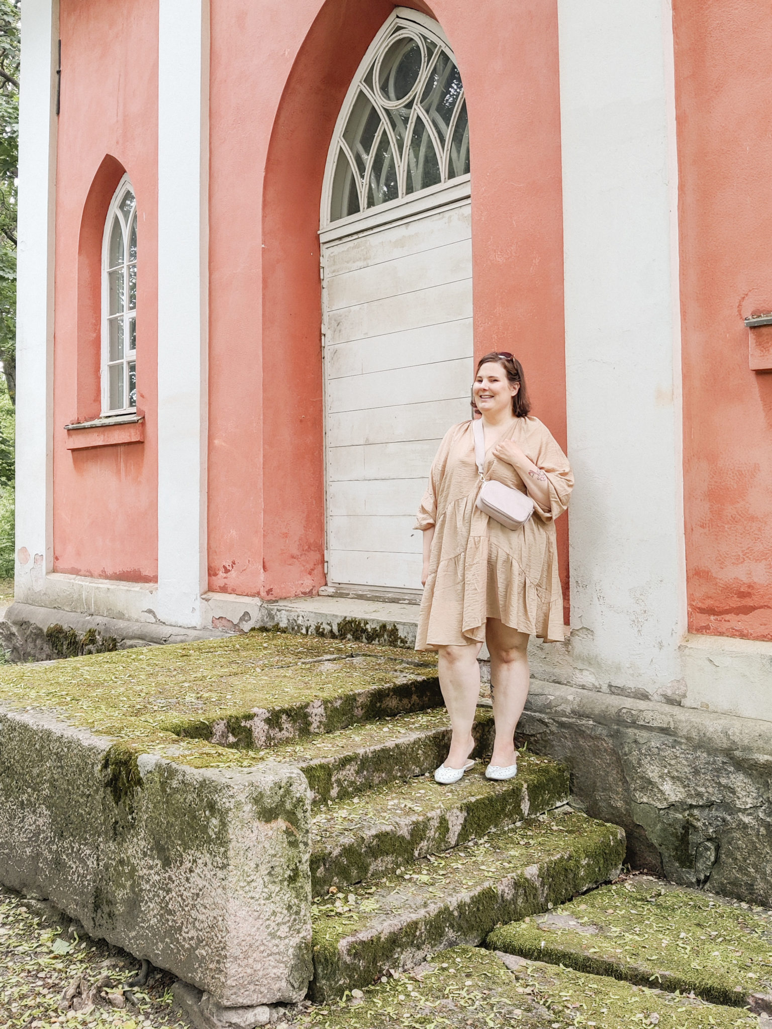 Vuosi sitten olin hyvin tukevasti raskaana. Tämä asu on super kiva ja voisin pukeutua vastaavaan myös näin ei raskaana. Tuossa vaiheessa olin jo tosi pitkällä ja olo oli sen mukainen. Raskaus oli sellaista aikaa, kun tunsin oloni hyväksi omassa kehossani. Raskaana iso vatsa on ihailtu, koska sen sisällä kasvaa uusi elämä. Julkaisin tuolloin tosi monta kuvaa vatsa paljaana ja olin ylpeä siitä. Tänä kesänä on tehnyt tiukkaa julkaista kuva itsestäni bikineissä. Samaan aikaan mietin, miksi se oman kehon arvostus loppui, kun vauva syntyi. Eikö sen olisi kaiken järjen mukaan pitänyt vain kasvaa? Selvisin jälleen yhdestä synnytyksestä ja saatoin maailmaan elävän, kauniin lapsen. Eikö omaa kehoa pitäisi silloin arvostaa vielä enemmän?