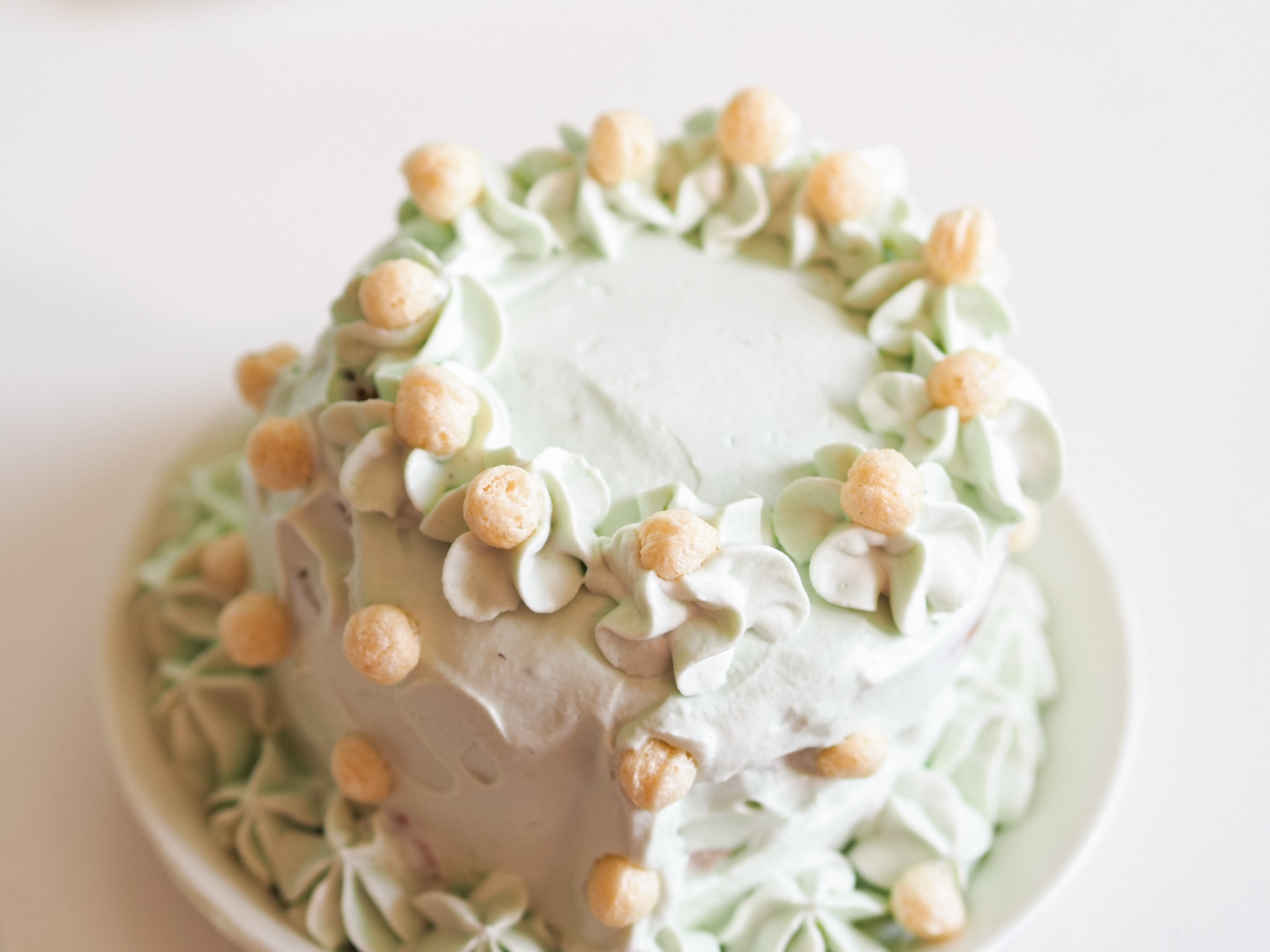 Leivoin kaksi peruskakkua, ison ja pienen. Niissä oli sitruunainen kakkupohja ja välissä vadelma täyte. Päällä oli voikreemi.