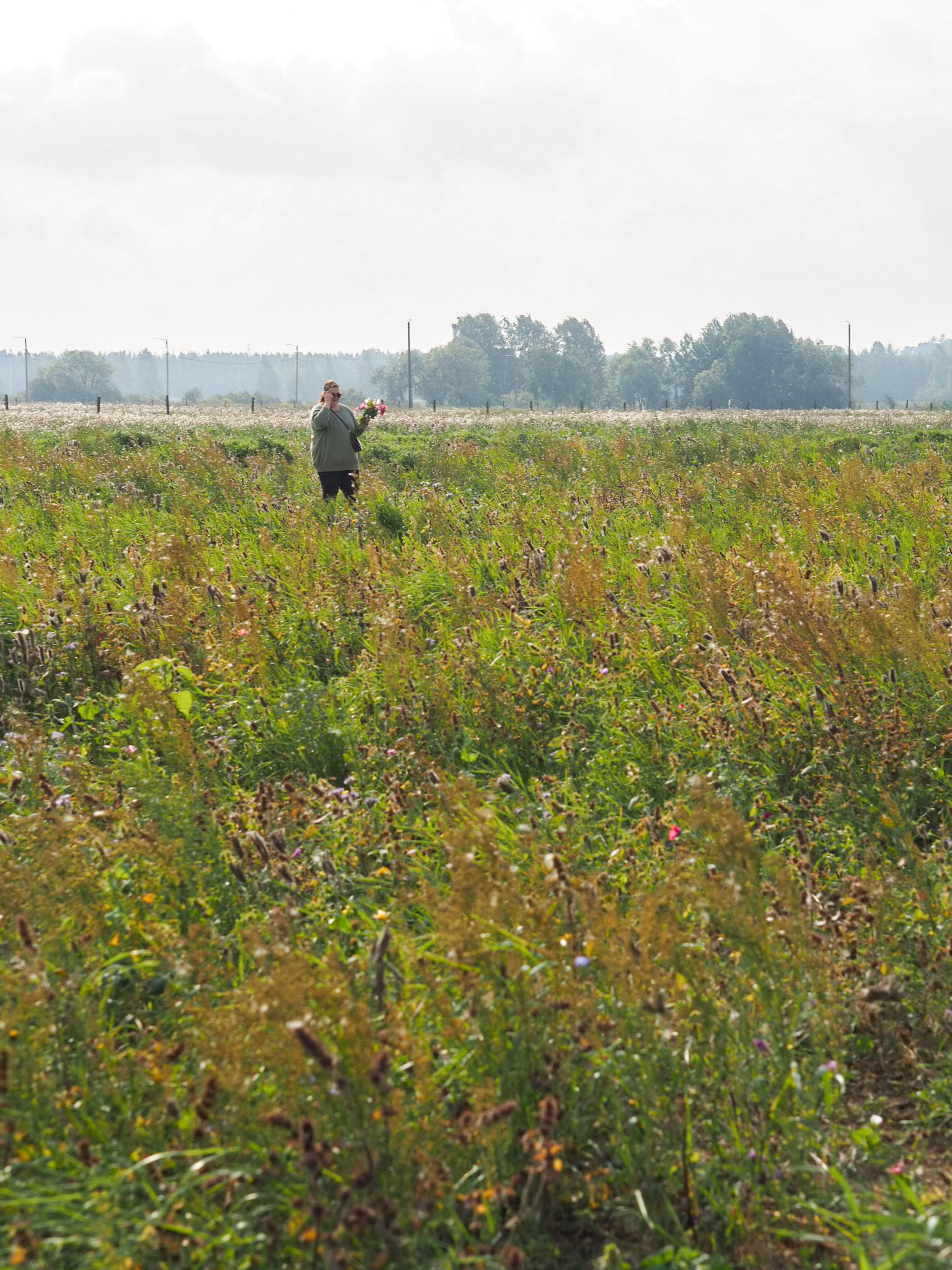 Käytiin tällä viikolla poimimassa Haltialan tilalta kukkia. Olin haaveillut siitä oikeastaan siitä asti, kun somessa vilahti ensimmäiset niittykukkakimput. Tuntui vaan siltä, että meillä ei olisi aikaa pyörähtää siellä. Mutta sitten yhtenä aamuna päätettiin lähteä aika extemporee kukkia poimimaan. Pakattiin taapero ja taaperon eväät mukaan ja lähdettiin bussilla kohti Haltialaa.