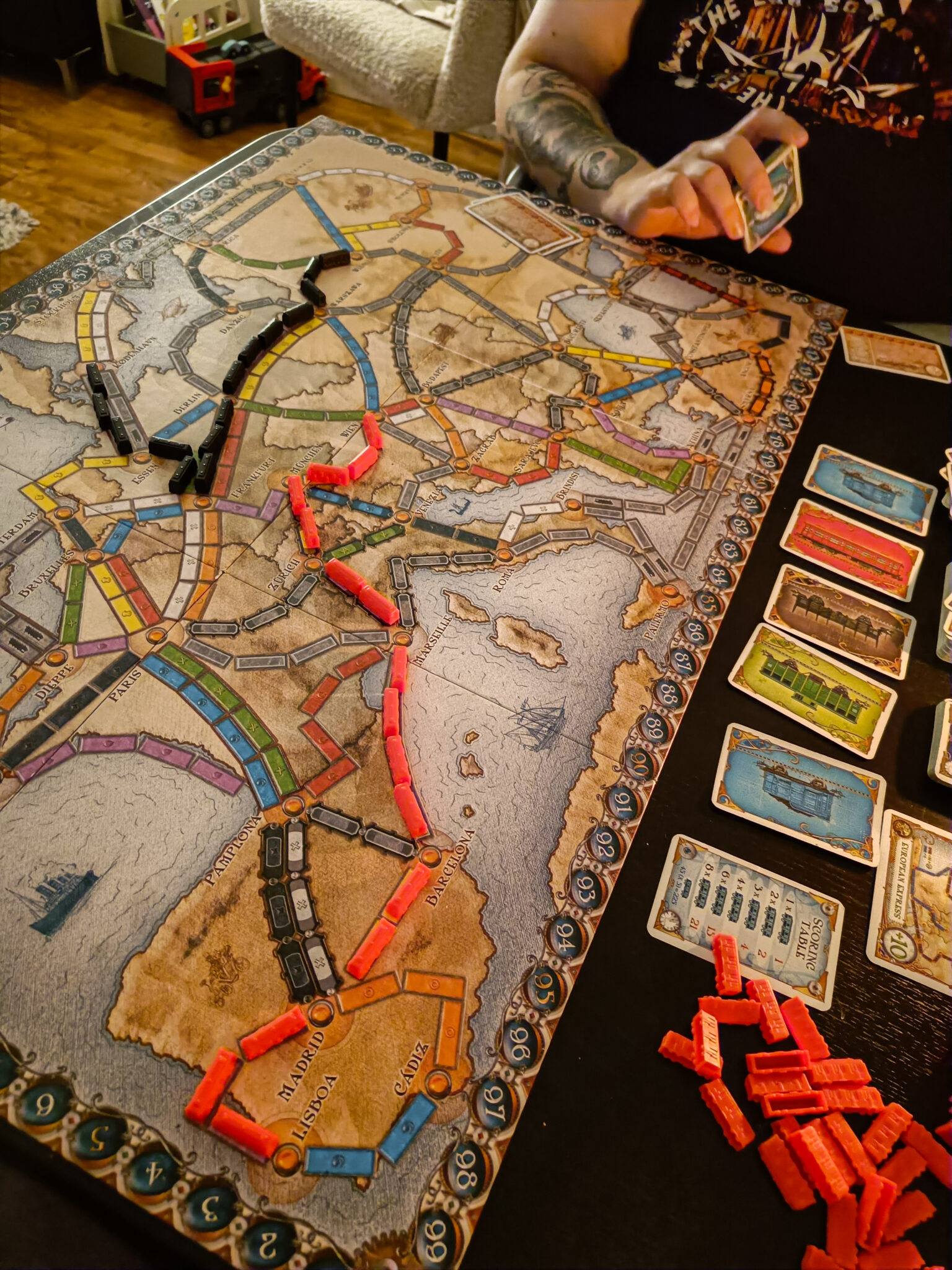 Ollaan vietetty Toten kanssa yhteistä aikaa lautapelien parissa aina kun ollaan saatu lapset nukkumaan. Ollaan lainattu kirjastosta eri pelejä ja pelattu niitä silloin, kun Totte on ollut illalla kotona. Meidän suosikiksi on noussut Ticket to Ride pelit. Ollaan kirjaston kautta päästy tutustumaan nyt ainakin kolmeen eri versioon.