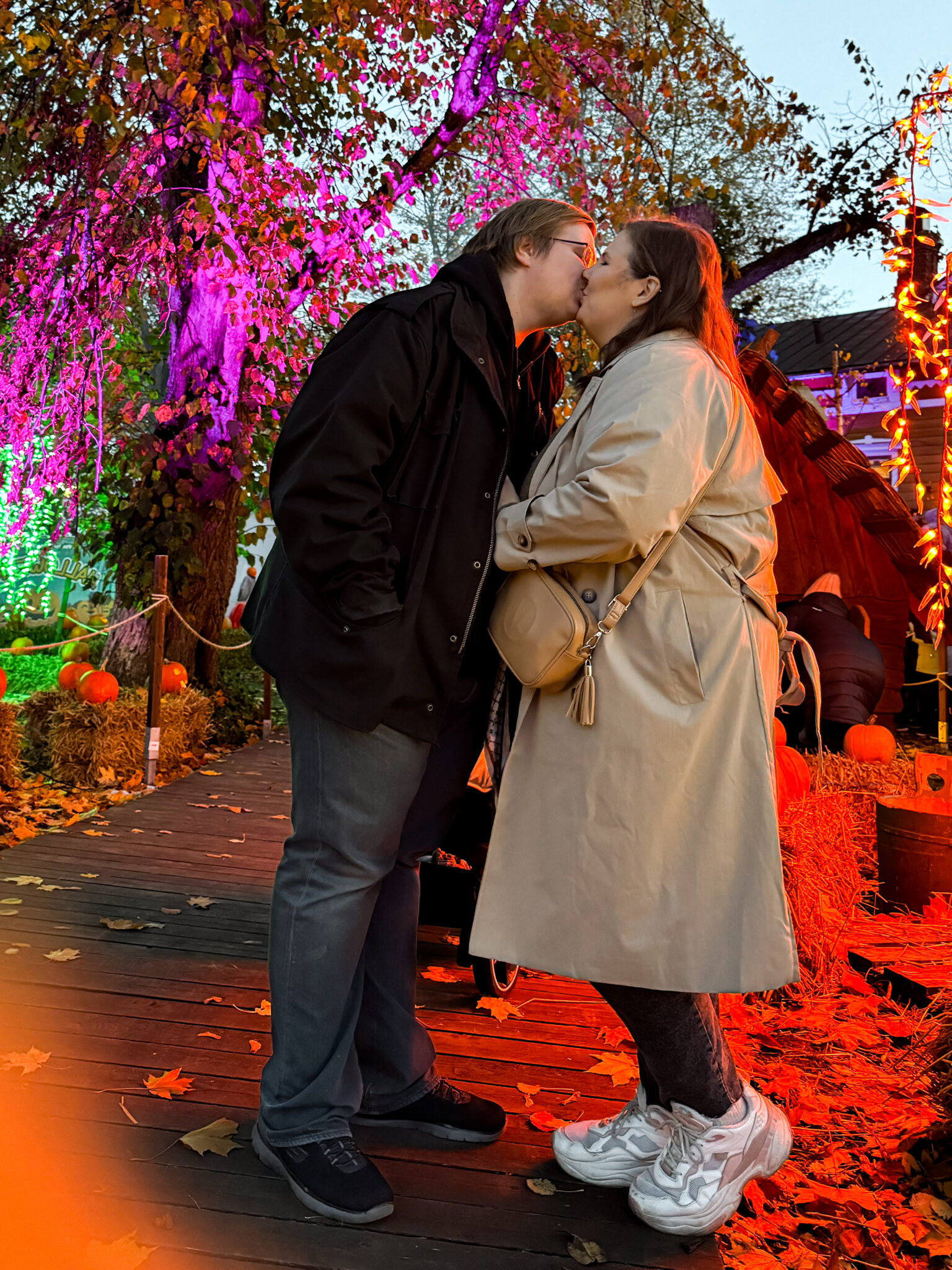 Valittiin vierailupäiväksi sellainen päivä, jolloin Totte oli vapaalla. Haluttiin ajoittaa vierailu niin, että nähtäisiin puisto niin valossa, kuin myös pimeällä. Syysloma viikolla kello viisi olisi ollut täydellinen aika. Me oltiin jo ennen tätä, jonka vuoksi vierailu oli ehkä vähän pitkä. Neljän viiden välissä porukkaa on myös aika maltillisesti paikalla. Silloin on tilaa kierrellä ja kuvat rauhassa, jos haluaa ottaa kuvia. Sen lisäki kaikkiin sellaisiin juttuihin, joihin voi mennä sisälle, oli tilaa, eikä jonoa.