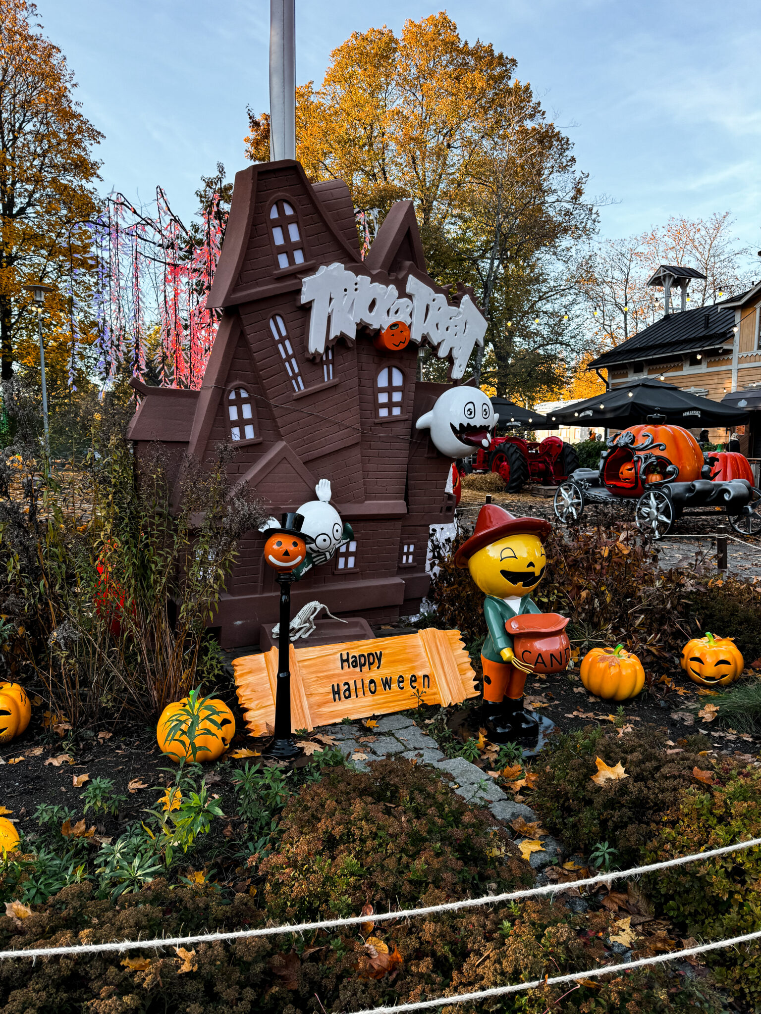 Valittiin vierailupäiväksi sellainen päivä, jolloin Totte oli vapaalla. Haluttiin ajoittaa vierailu niin, että nähtäisiin puisto niin valossa, kuin myös pimeällä. Syysloma viikolla kello viisi olisi ollut täydellinen aika. Me oltiin jo ennen tätä, jonka vuoksi vierailu oli ehkä vähän pitkä. Neljän viiden välissä porukkaa on myös aika maltillisesti paikalla. Silloin on tilaa kierrellä ja kuvat rauhassa, jos haluaa ottaa kuvia. Sen lisäki kaikkiin sellaisiin juttuihin, joihin voi mennä sisälle, oli tilaa, eikä jonoa.