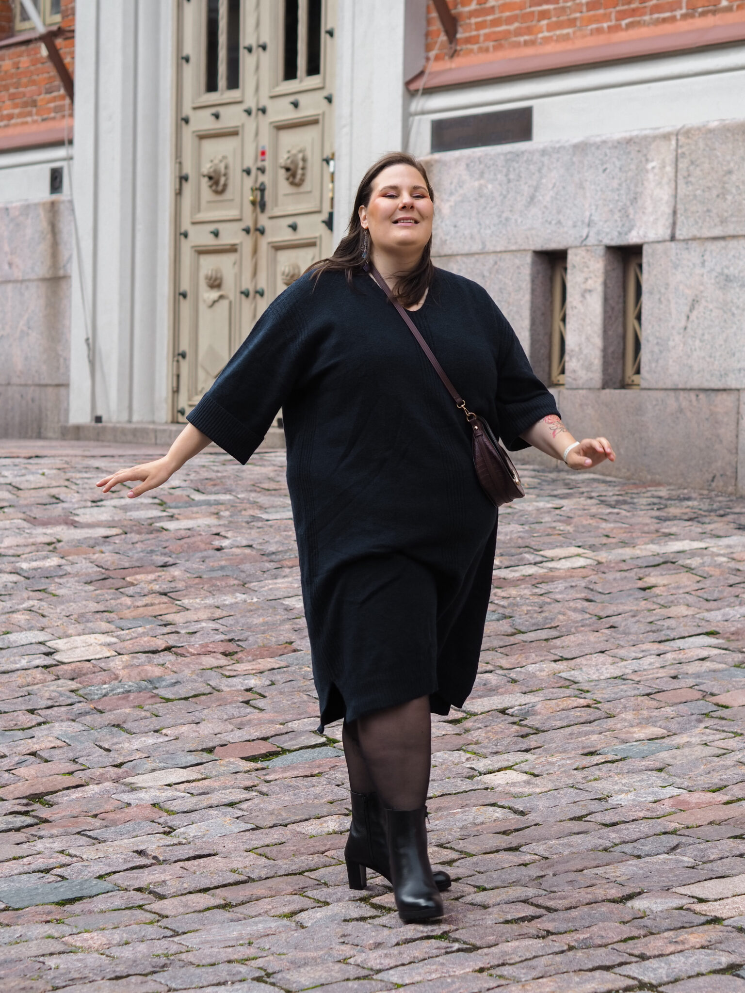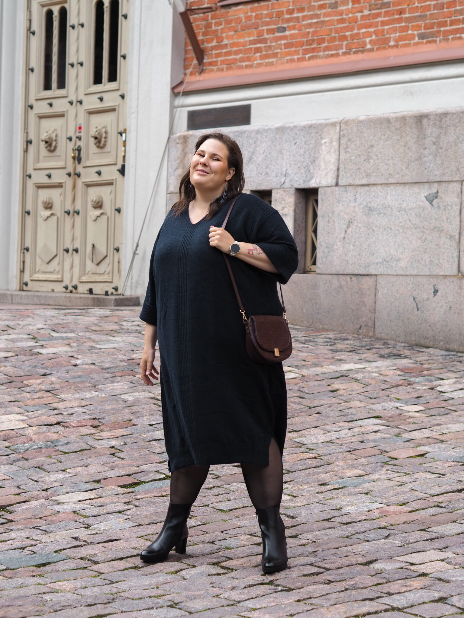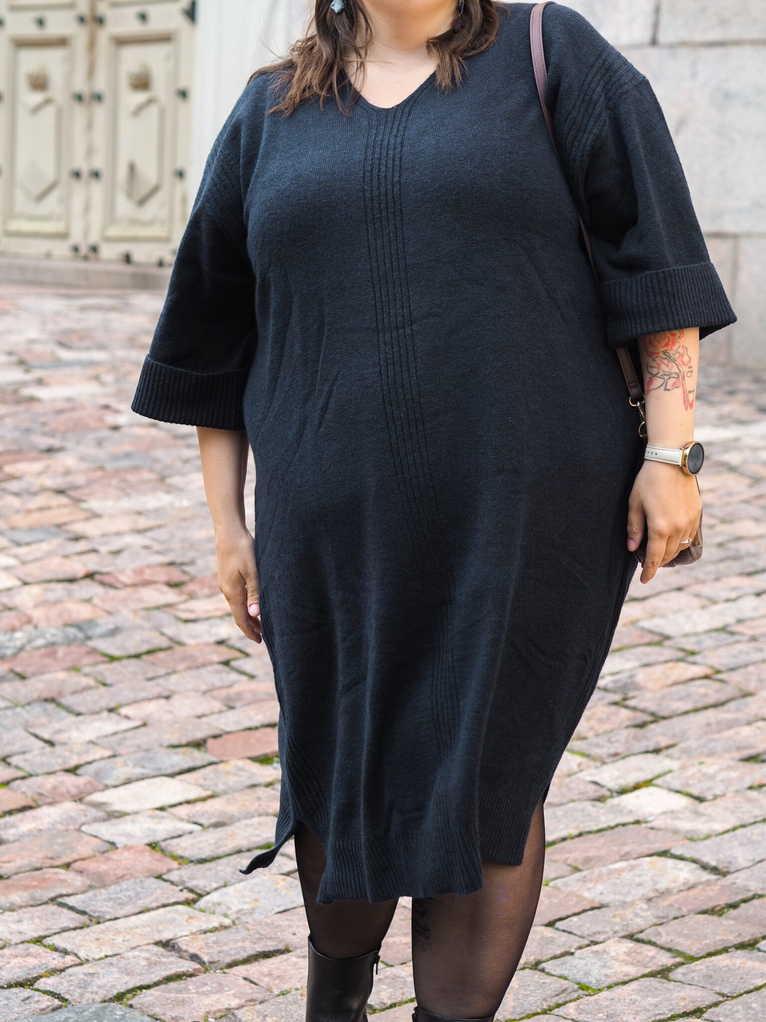 Olen saanut tuon neulemekon Ulla Popkenilta tänä syksynä yhteistyön merkeissä. Ja tämä on aivan ihana. Neulemekko on päällä lämmin ja mukava, sekä rento. Tämä on sellainen, aivan täydellinen kaapumainen turvavaate niihin päiviin kun olo omassa kehossa ei ole paras mahdollinen. Toki tämä on myös muuten ihana, mutta erityisesti noihin päiviin tämä on täydellinen.