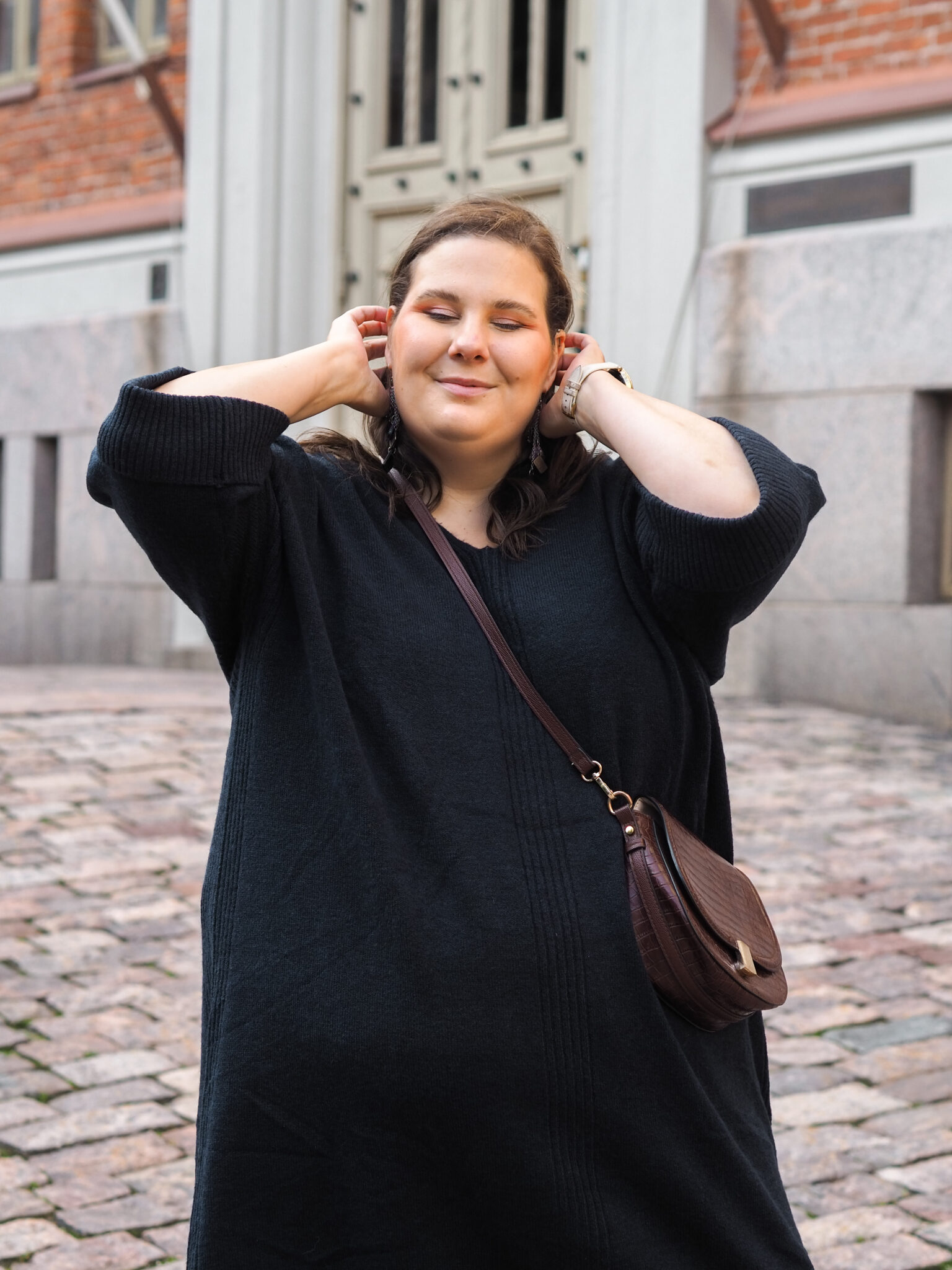 Olen saanut tuon neulemekon Ulla Popkenilta tänä syksynä yhteistyön merkeissä. Ja tämä on aivan ihana. Neulemekko on päällä lämmin ja mukava, sekä rento. Tämä on sellainen, aivan täydellinen kaapumainen turvavaate niihin päiviin kun olo omassa kehossa ei ole paras mahdollinen. Toki tämä on myös muuten ihana, mutta erityisesti noihin päiviin tämä on täydellinen.