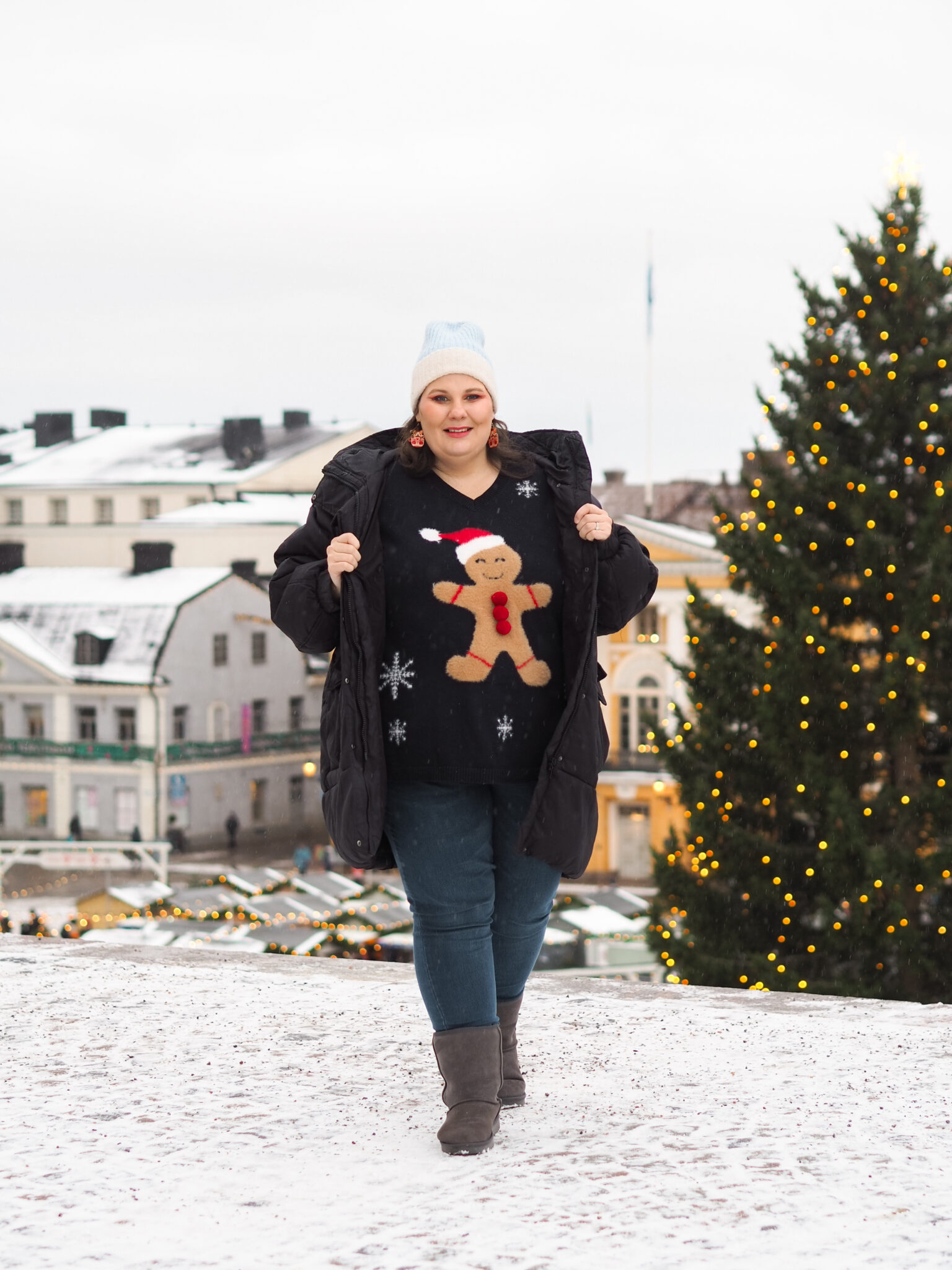 Minulla ei ole ollut aiemmin jouluneuletta. Tämä kyseinen neule on aivan ihana. Se on minun makuuni riittävän simppeli, mutta samaan aikaan jouluinen. Lapset rakastavat tätä, koska nuo pipariukon napit ovat pompomeja. Ja onhan tämä kaikin puolin super söpö. Jouluneule on kyllä sellainen vaate, että en hankkisi niitä kaappiin kuin yhden kivan. Käyttöaika on kuitenkin tosi lyhyt.