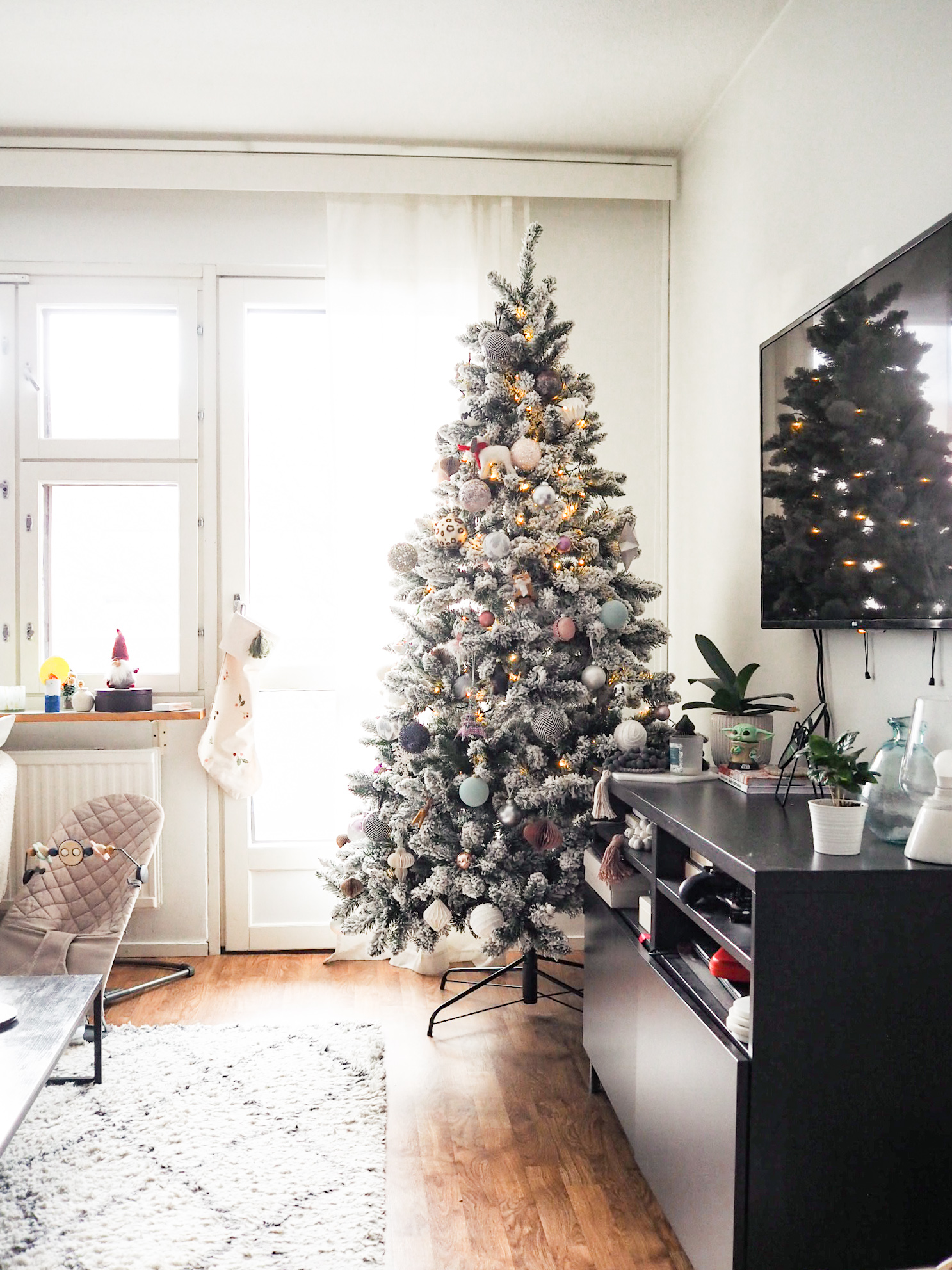 Ensinnäkin, otetaan joulukuusi esille hyvissä ajoin marraskuun puolella. Aiempina vuosina ollaan koristeltu se myös samalla kertaa. Tänä vuonna joulukuusi sai olla paikoillaan, kuukauden päivät ilman koristeita, koska perheessämme on taapero ja aloin sen myötä miettiä, että tästä voisi tulla hyvin tapa. Että vaikka kuusi otetaan esille marraskuussa, koristelu voisi hyvin tapahtua joulukuun puolella. Tätä ajatusta hauduttelemme.