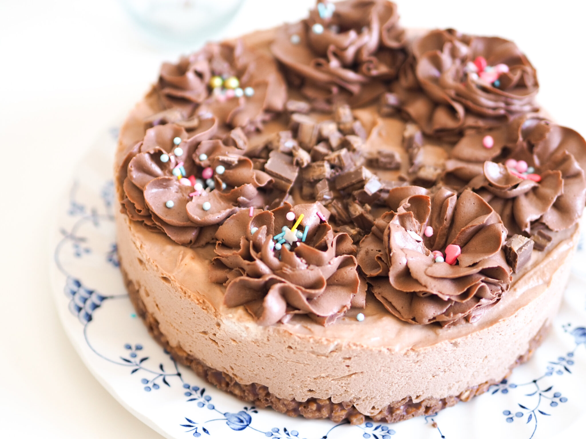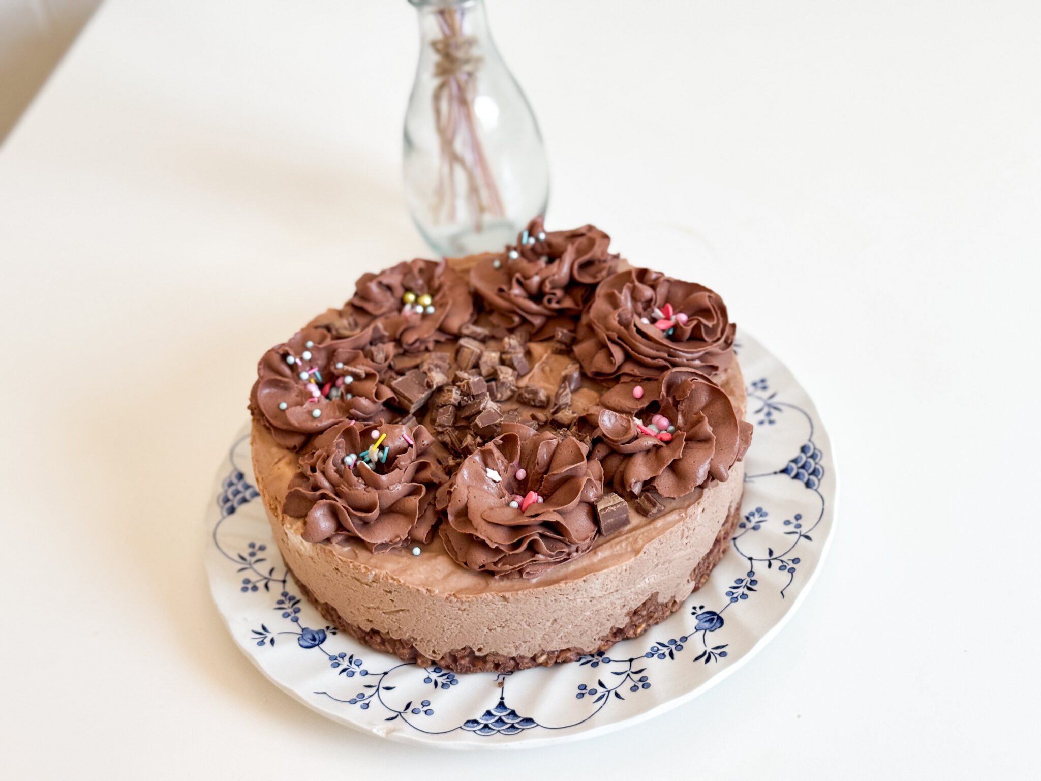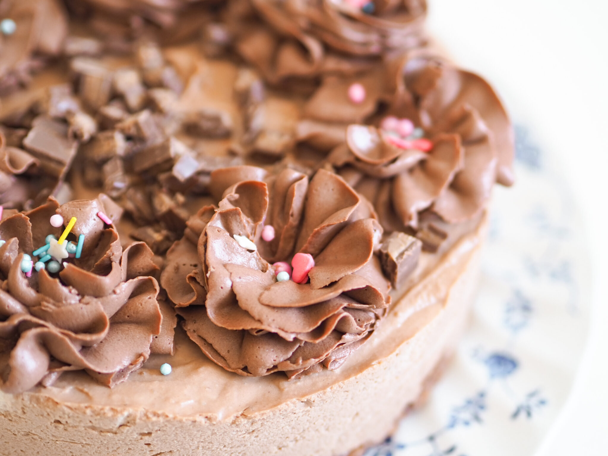Iso tekijä kakun makuun oli se, että vaihdoin sen perus maustamattoman tuorejuuston mascarponeen, joka on maultaan miedompi. Tähän kakkuun tämä sopi ihan täydellisesti. Lopputuloksena oli sellainen pehmeä, samettinen kakku. Sen lisäksi testasin ensimmäistä kertaa tehdä pohjan riisimuroista ja suklaasta. Tykästyin tähän pohjaan. Tosi käyttökelpoinen pohja ja sovellettavissa myös muihin kakkuihin. Suosittelen testaamaan.