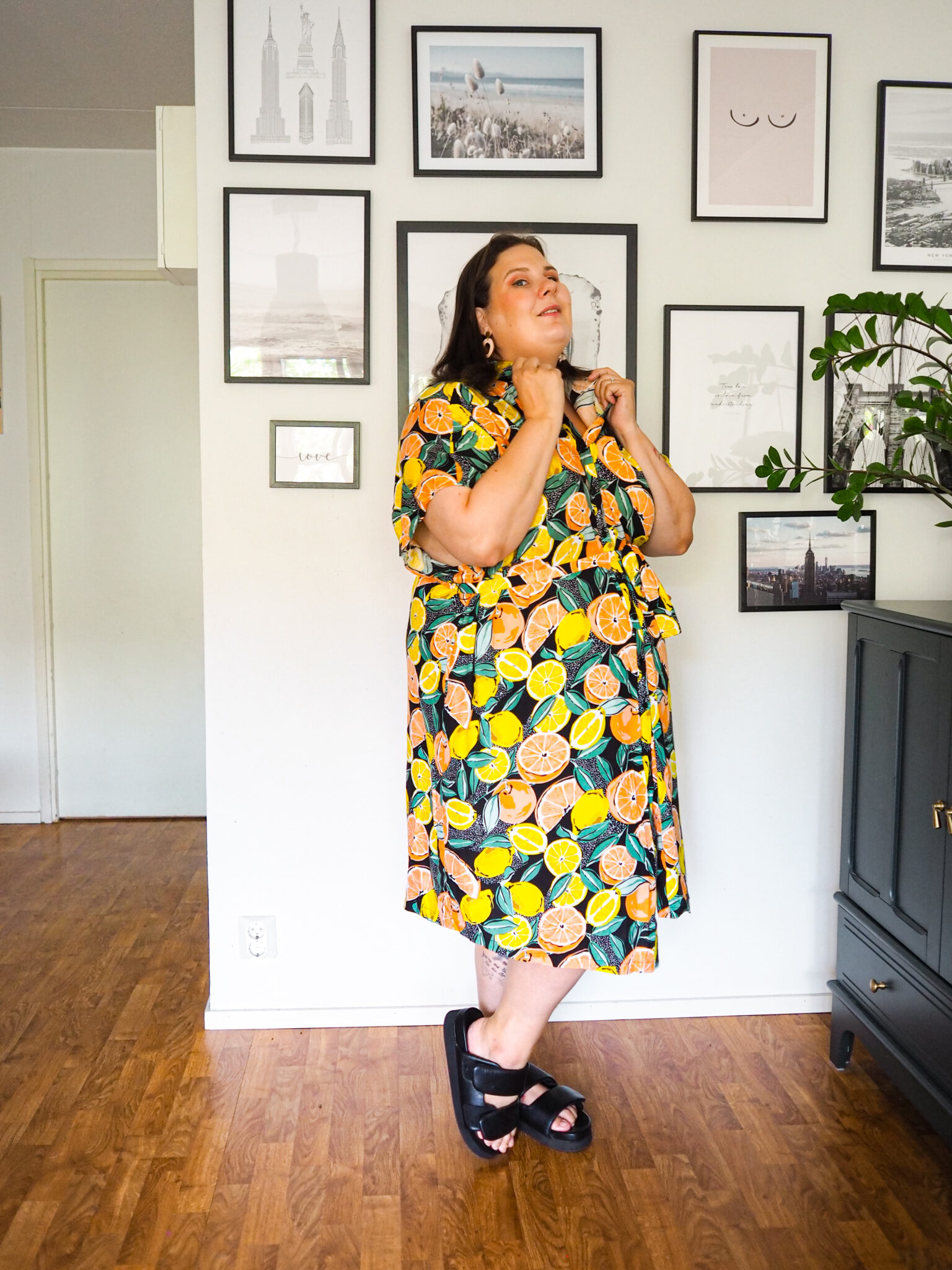 Tämä sitruunakuosinen paitamekko oli rakkautta ensisilmäyksellä. Pidän valtavasti sitruuna-asioista. Olen haaveillut sitruunamekosta, joten tämä vaikutti suorastaan täydelliseltä. Paitamekot ovat päällä kivan rennon oloisia ja tämä on ihan täydellinen arkimekko. Solmittavalla vyöllä saa kivasti vyötäröä esiin. Loppukesän terassi-illat, täältä tullaan!
