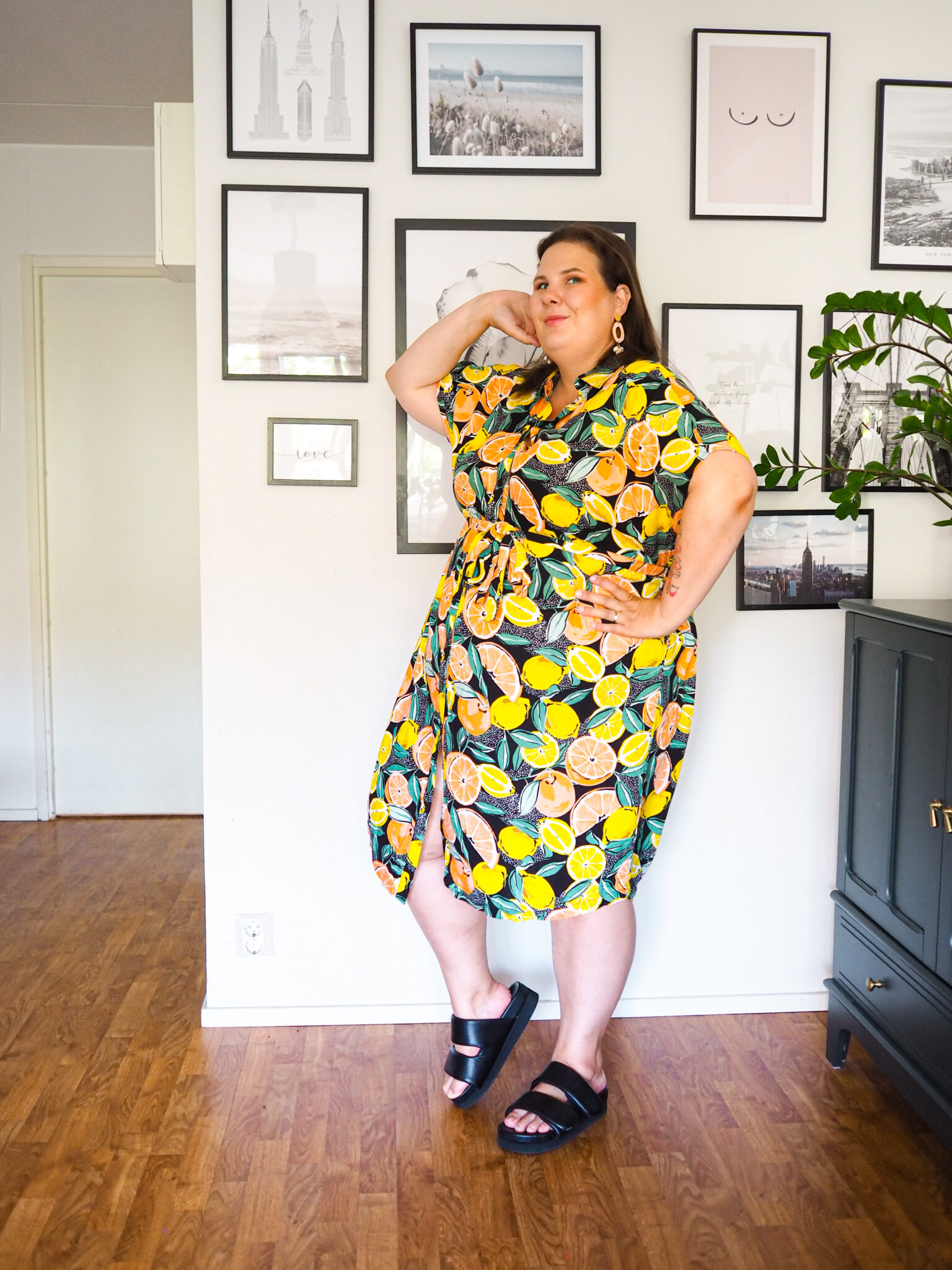 Tämä sitruunakuosinen paitamekko oli rakkautta ensisilmäyksellä. Pidän valtavasti sitruuna-asioista. Olen haaveillut sitruunamekosta, joten tämä vaikutti suorastaan täydelliseltä. Paitamekot ovat päällä kivan rennon oloisia ja tämä on ihan täydellinen arkimekko. Solmittavalla vyöllä saa kivasti vyötäröä esiin. Loppukesän terassi-illat, täältä tullaan!