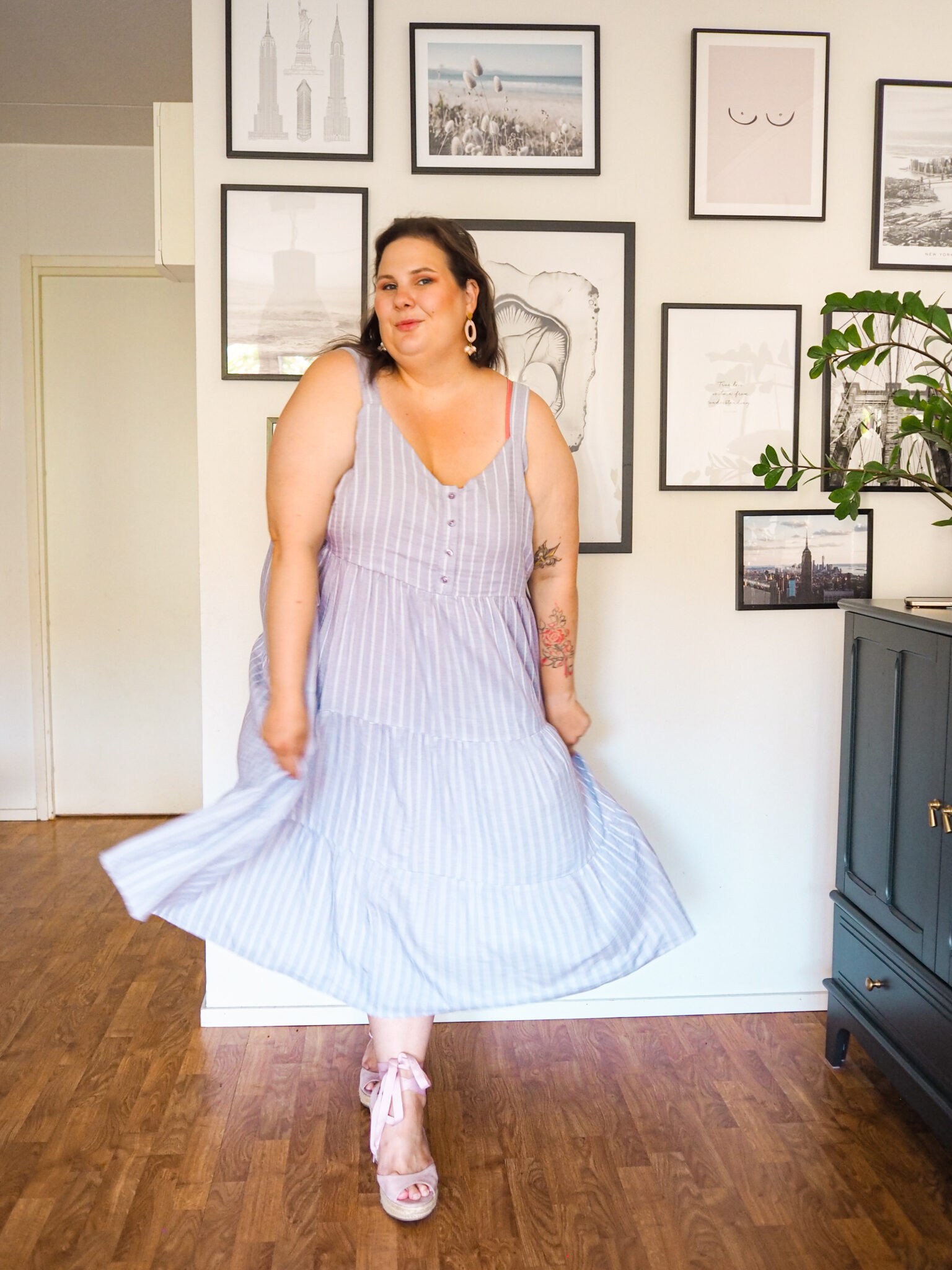 Tämä on ehkä toinen tämän yhteistyön suosikki mekoista. Tämä on oikein klassinen kesämekko. Olkaimet, a-linja ja kaikin puolin super söpö. Lasten mielestä tämä oli myös aivan ihana. Etumuksen napit ovat myös kiva yksityiskohta. Rohkaisen muuten ihan kaikkia näyttämään käsivartensa kesällä. Itselleni se käsivarsista murehtiminen ei ole tuonut mitään hyvää vaan pikemminkin rajoittanut.