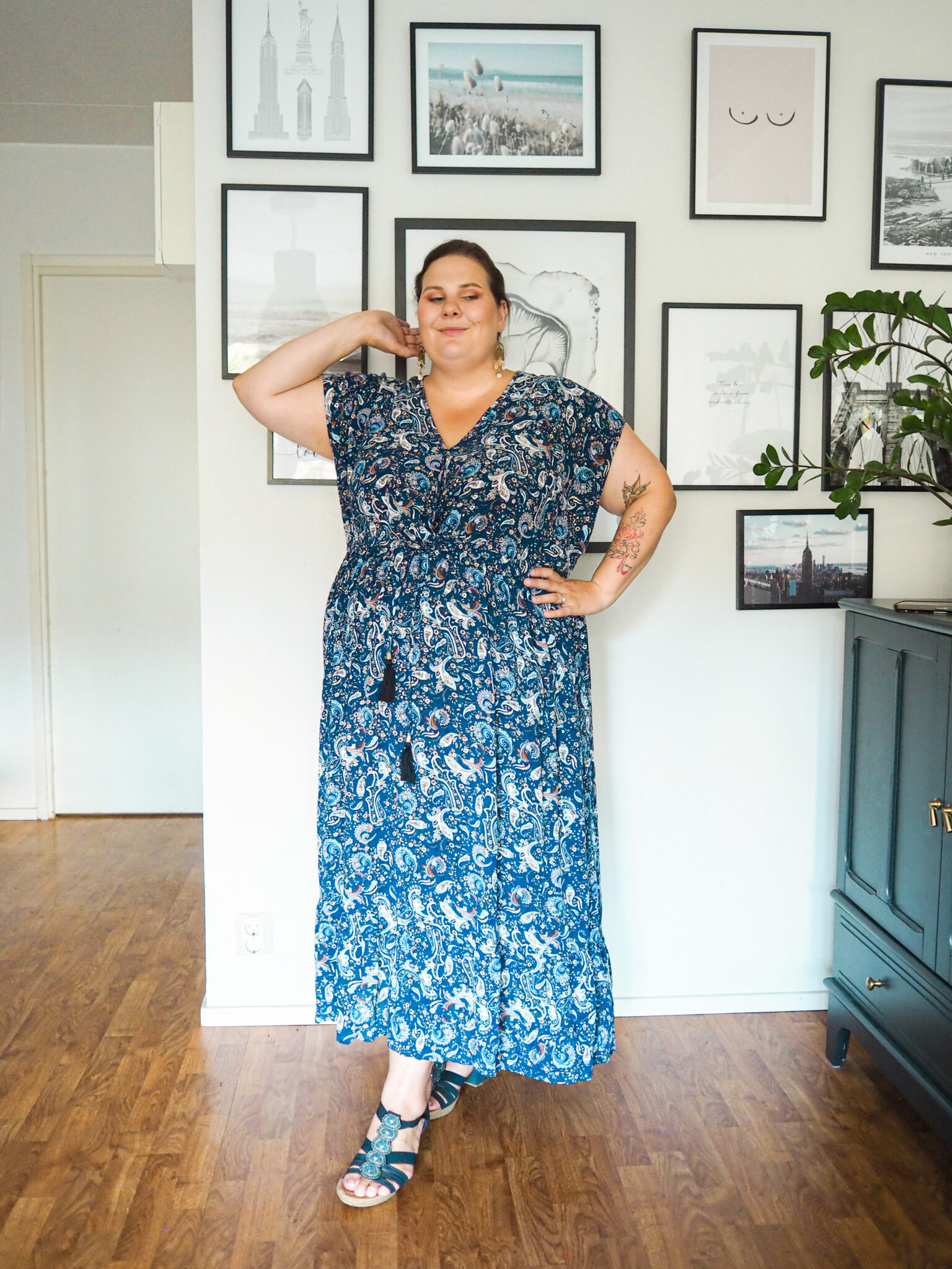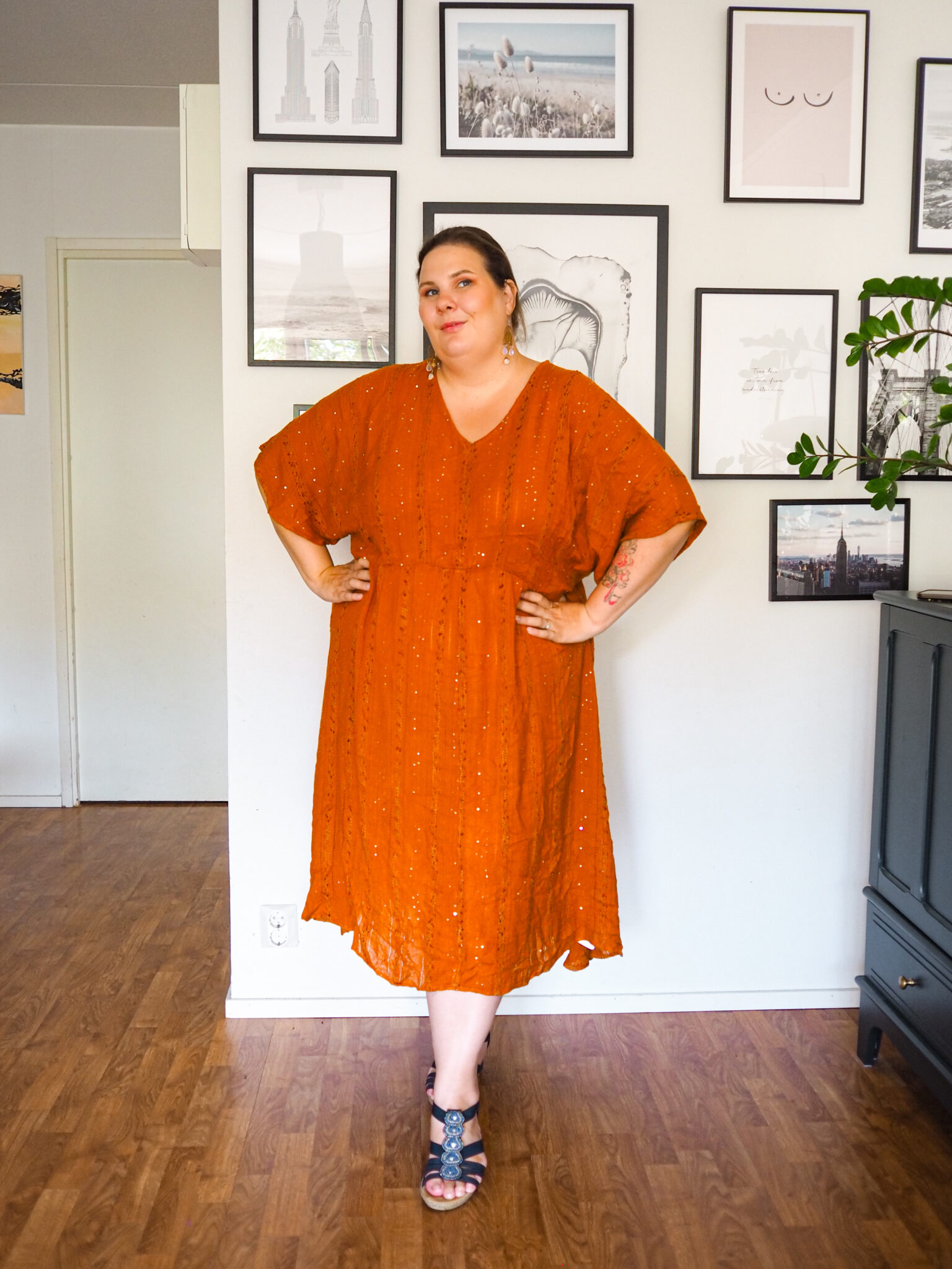 Seuraava moderni hippikaapu. Pidän valtavasti mekon mallista. Tähän tulen varmasti yhdistämään jonkun kivan vyön. Viileämmillä ilmoilla tämä menee täydellisesti neuletakin käverina. Näin kesällä tämä on tosi kevyt ja ilmava päällä. Mekon paljettikoristeet tekevät tästä aavistuksen juhlavamman.