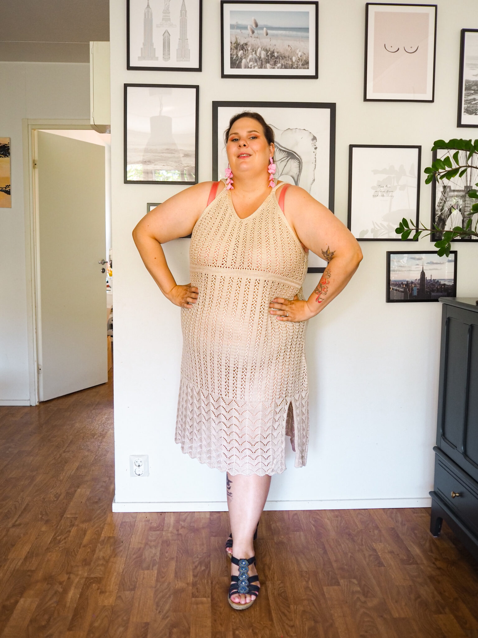 Tämä mekko on toinen suosikeistani. Minulla ei ole ollut ennen virkattua mekkoa ja jännitin sitä ihan vähän, mutta tämä toimii paremmin, kuin olin uskaltanut toivoa. Vaikka mekko on virkattu, niin ei tässä tarvitse kuitenkaan miettiä, että ihmiset näkisivät liikaa. Täydellinen kesä- ja rantamekko.