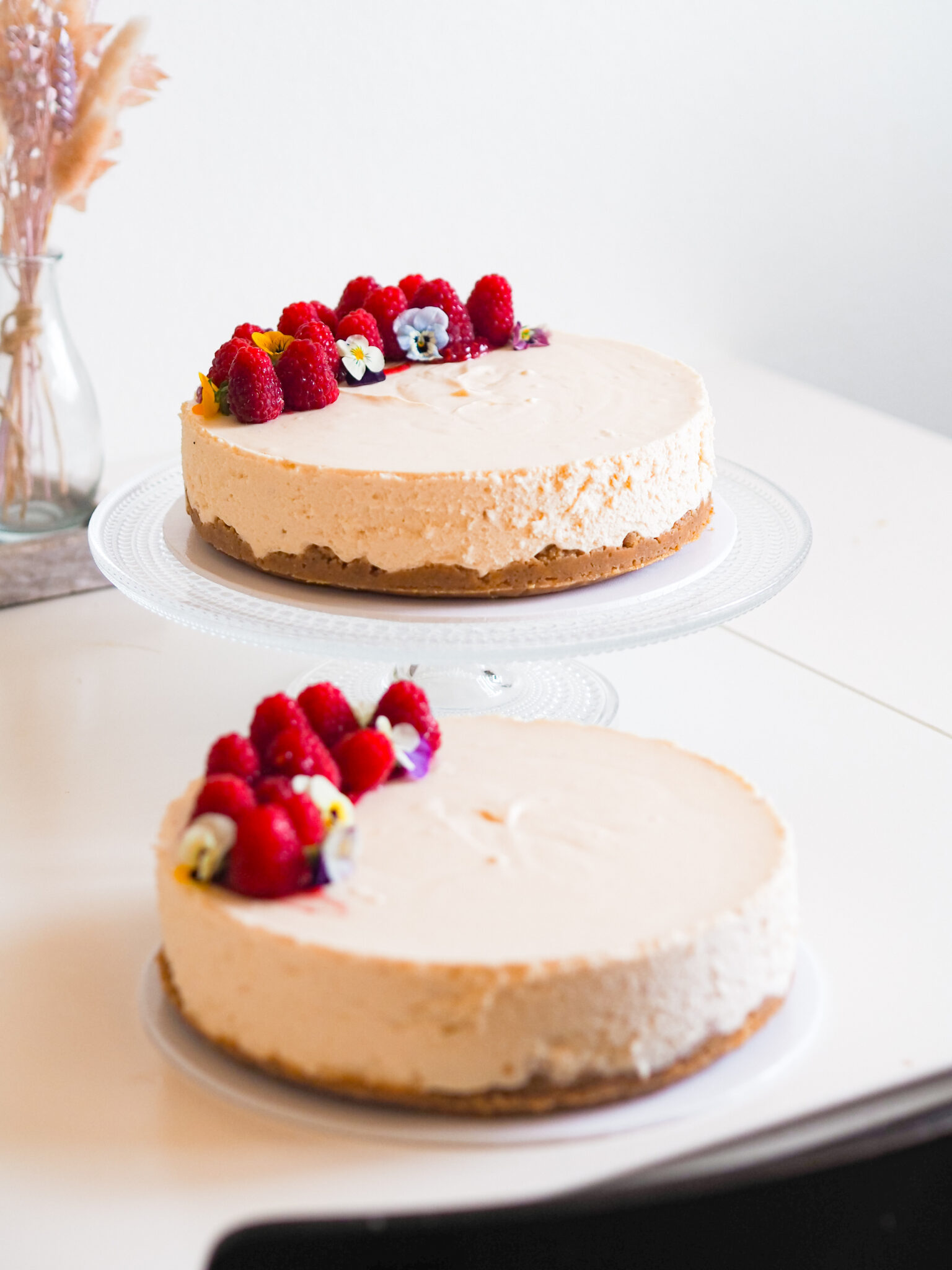 Tein kakut hyvin tarkkaan toiveiden mukaan. Maku toiveena oli raparperi-valkosuklaa ja koristeeksi toivottiin syötäviä kukkia ja marjoja. Mielstäni niistä tuli kaikessa yksinkertaisuudessaan todella kauniit. Jälkeen päin sain kiitoksia ja kehuja. Kakut olivat maistuneet ja menneet viimeistä murua myöten. Mikä on ehkä paras palaute, mitä voin saada.