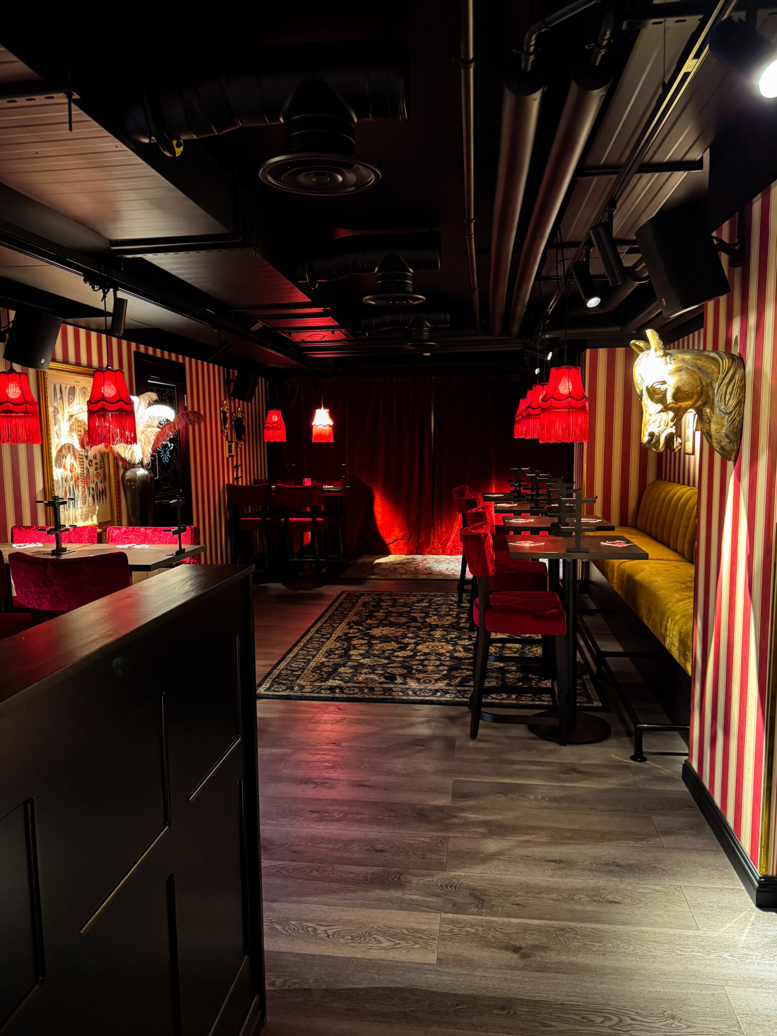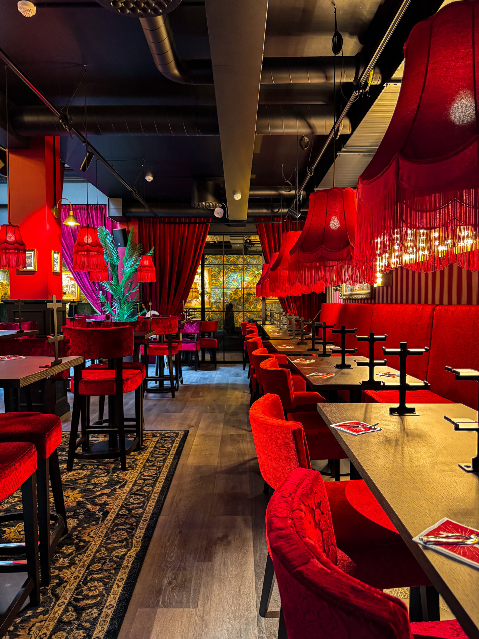 Ravintola löi ällikällä jo ovella. Jo sisääntulo oli aivan upea ja ravintolan konsepti jatkui tosi selkeänä ihan alusta loppuun. Sisustus oli upea ja loppuun asti mietitty niitä kaikkein pienimpiä yksityiskohtia myöten. Drinkkilista oli mielenkiintoinen ja monipuolinen. Kaikista drinkeistä löytyi versio alkoholilla ja ilman. Pöytiin tarjoiltiin ensimmäiseksi pienet kipot popcornia alku naposteltavaksi. Tämä oli yksityiskohta, josta itse pidin.