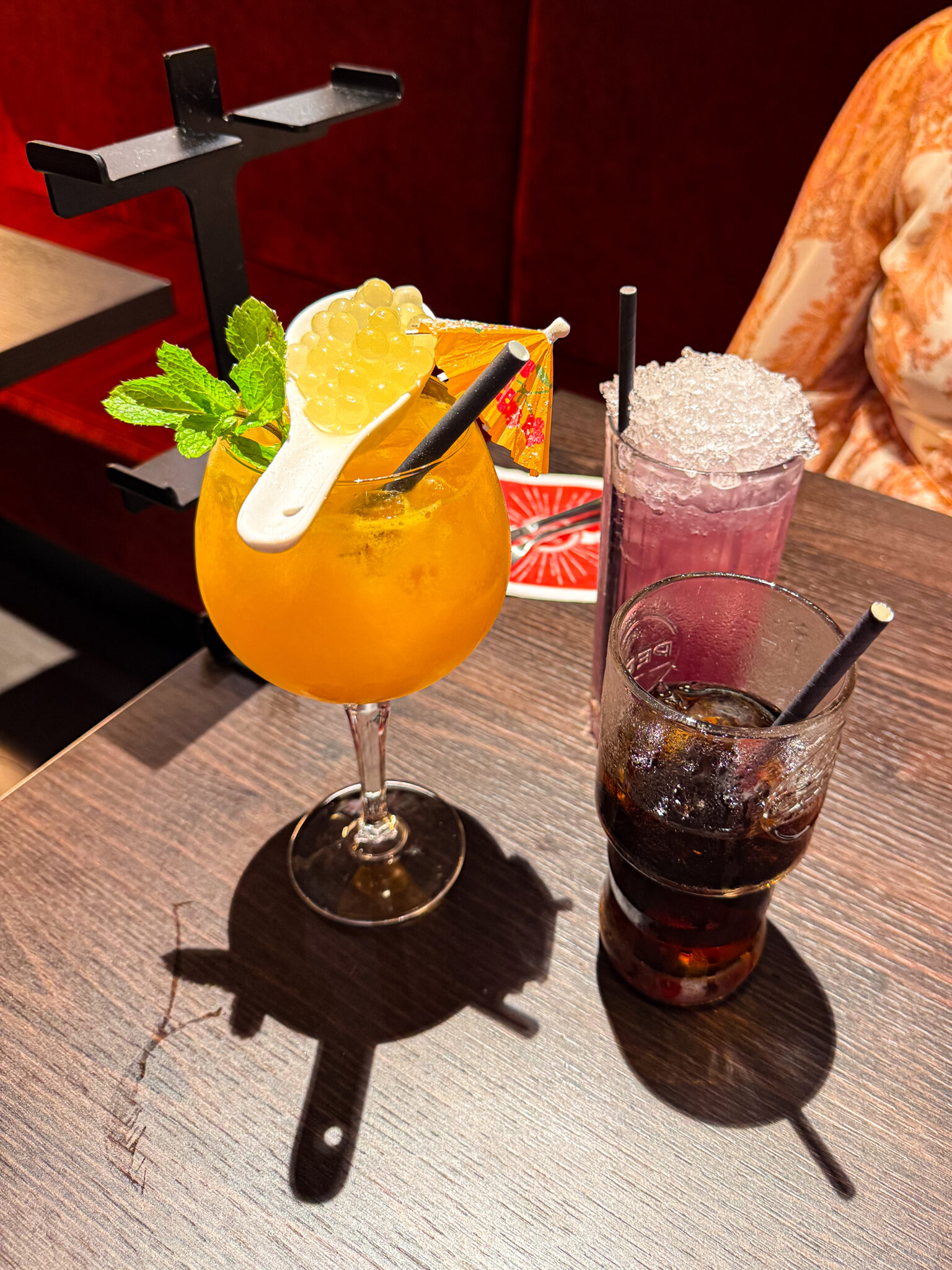 Onnistuin tilaamaan myös todella herkullisen drinkin, jossa oli hauska yksityiskohta. Drinkkiini kuulu nimittäin boba-helmiä.