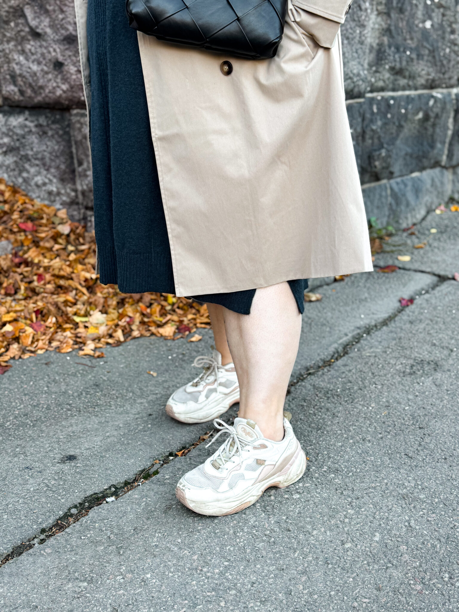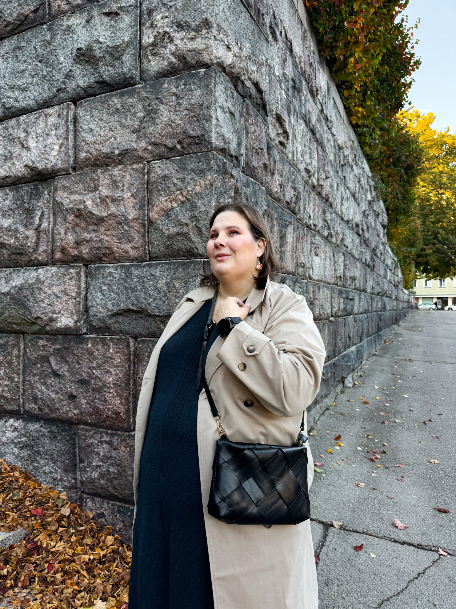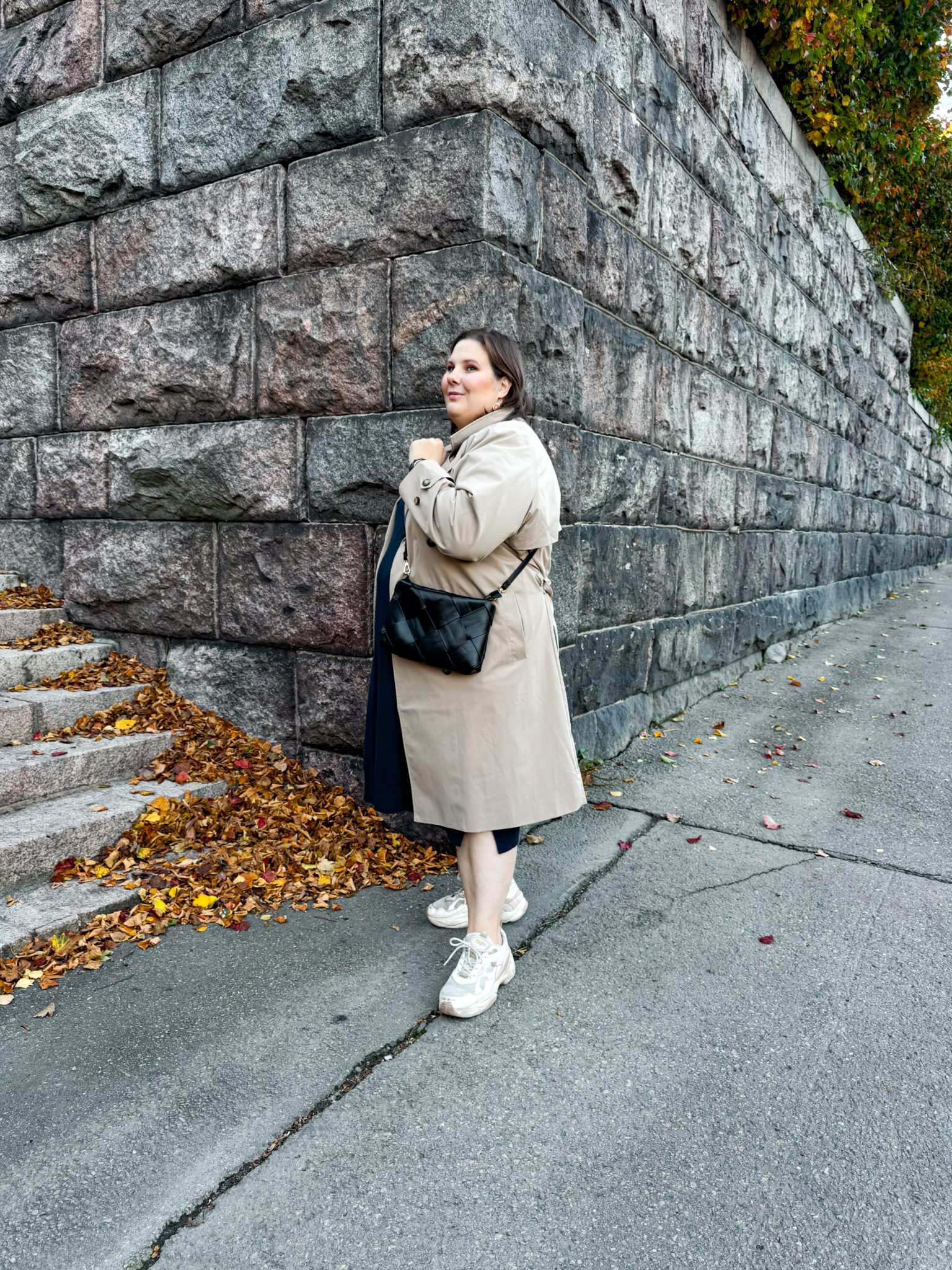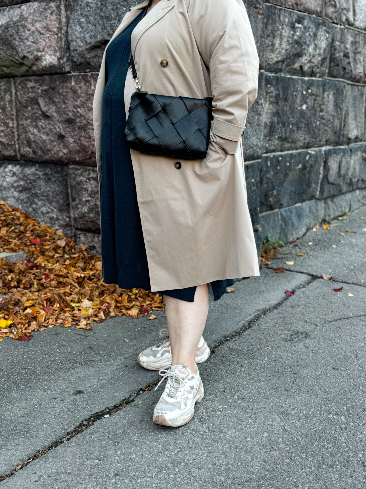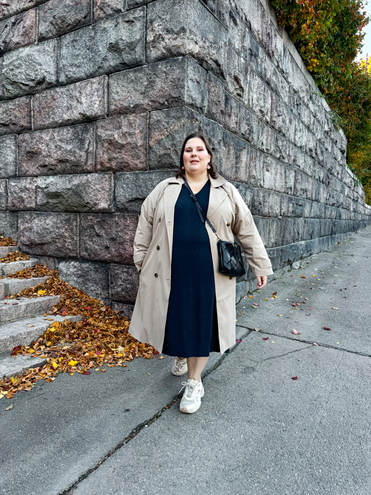 Rakastan sinisen neulemekon ja trenssin yhdistelmää. Se on niin fresh. Jos mekko olisi musta, sävyero saattaisi olla jyrkkä, mutta tummansininen pehmentää kokonaisuutta. Lisäksi tuo on ehdottomasti mukavin neulemekko, joka minulla on ollut. Zizziltä taannoin saatu trenssi on myös ihan lempparini. Kaivan sen kaapista esiin niin syksyisin, kuin myös keväisin. Se on ehdottomasti lempitakkejani.