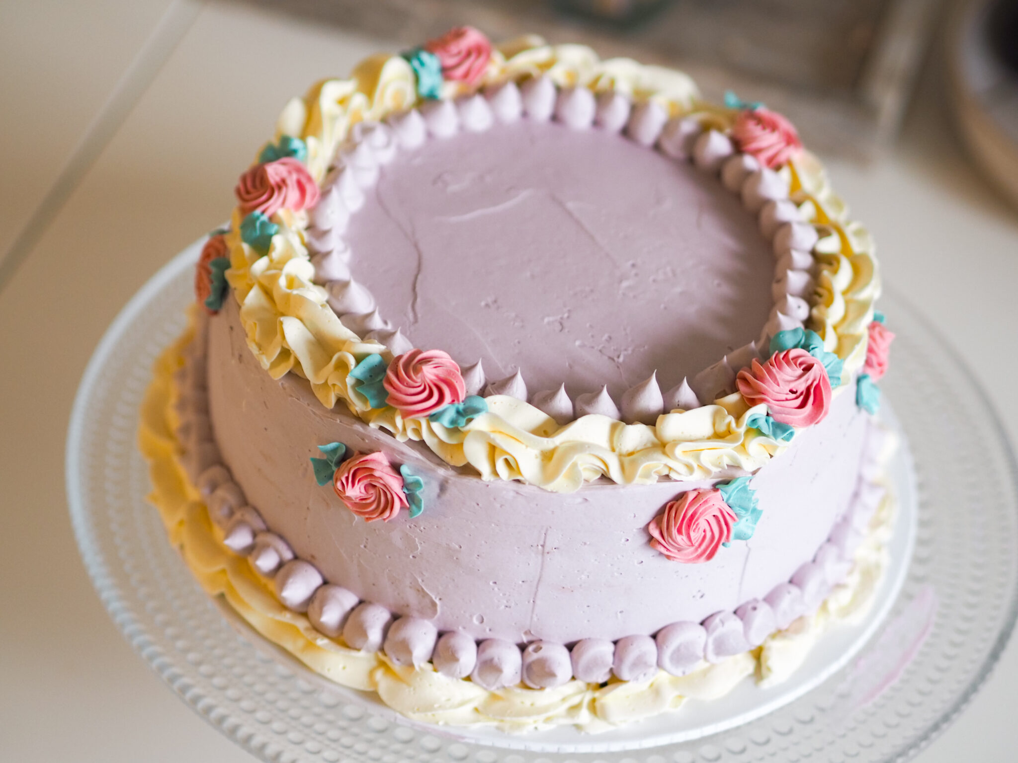 Toivottavasti testaat tätä reseptiä! Se on oikeasti ihana. Viimeiset kuvat ovat kakusta, jonka leivoin ystäväni lapselle. Toiveena oli lila suklaakakku, jossa ei saanut olla vihreää ja oranssia. Siksi kikkailin nuo ruusujen lehdet enemmän turkoosin, kuin vihreän sävyisiksi.