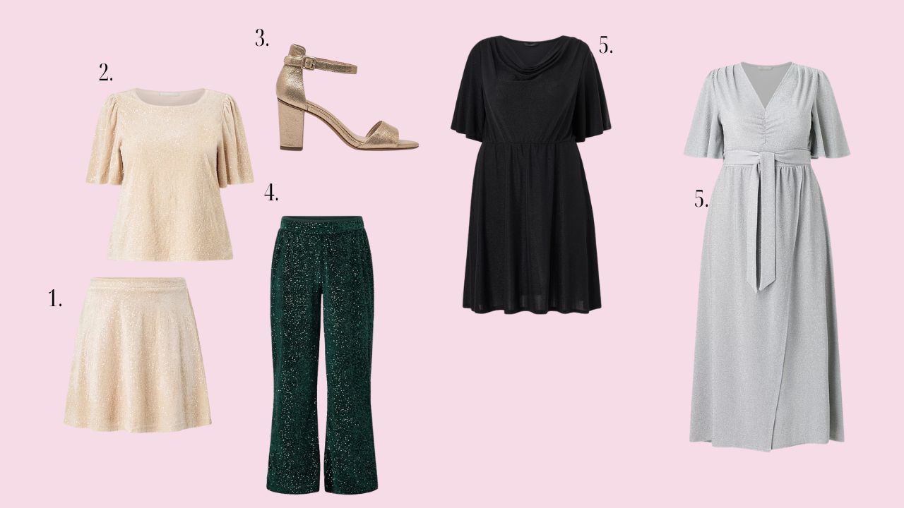 1. Paljettihame (mainoslinkki*) 2. Paljettipaita (mainoslinkki*) 3. Sandaalit korolla (mainoslinkki*) 4. Paljettihousut (mainoslinkki*) 5. Mekko (mainoslinkki*) 6. Maximekko (mainoslinkki*)