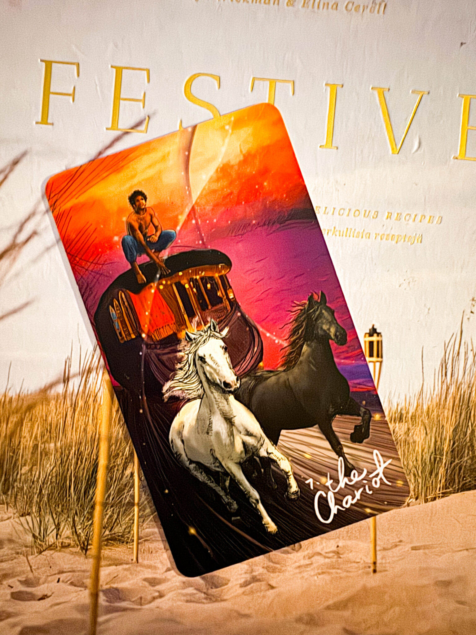 Ja koska omistan nykyään tarot-kortit, en voinut olla kurkkaamatta, miltä tulevan vuoden kortit näyttävät. Vuoden 2026 kollektiivinen kortti on pakan 10. kortti, joka on the wheel of fortune, joka kertoo kohtalosta, elämän käännekohdasta, muutoksesta ja karmasta. Henkilökohtainen korttini vuodelle 2026 on 7. kortti the chariot eli sotavaunut. Kortti edustaa muun muassa itsevarmuutta, tavoitteita ja voitonhalua. Omalla kohdallani tulkinta olisi luottaa kohtaloon ja työskennellä niiden itselle tärkeiden tavoitteiden eteen.