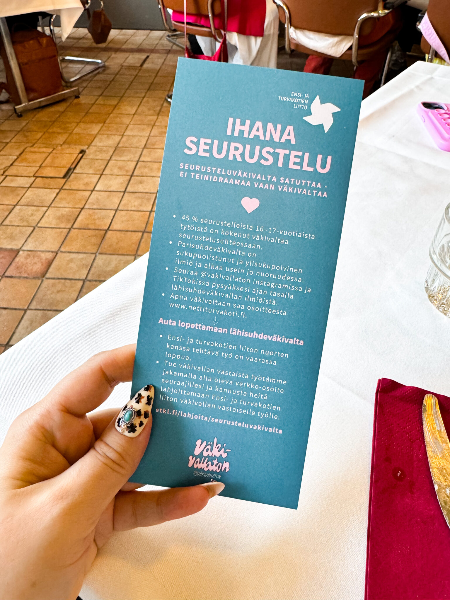 Olin perjantaina Väkivallattoman Ihana seurustelu vaikuttajabrunssilla. (mainos/pr-tilaisuus*) Nämä tapahtumat ovat itselleni aina henkilökohtaisesti tärkeitä ja samaan aikaan myös melkoisia tunteiden vuoristoratoja. Mutta haluan aina antaa palstatilaa tälle aiheelle.