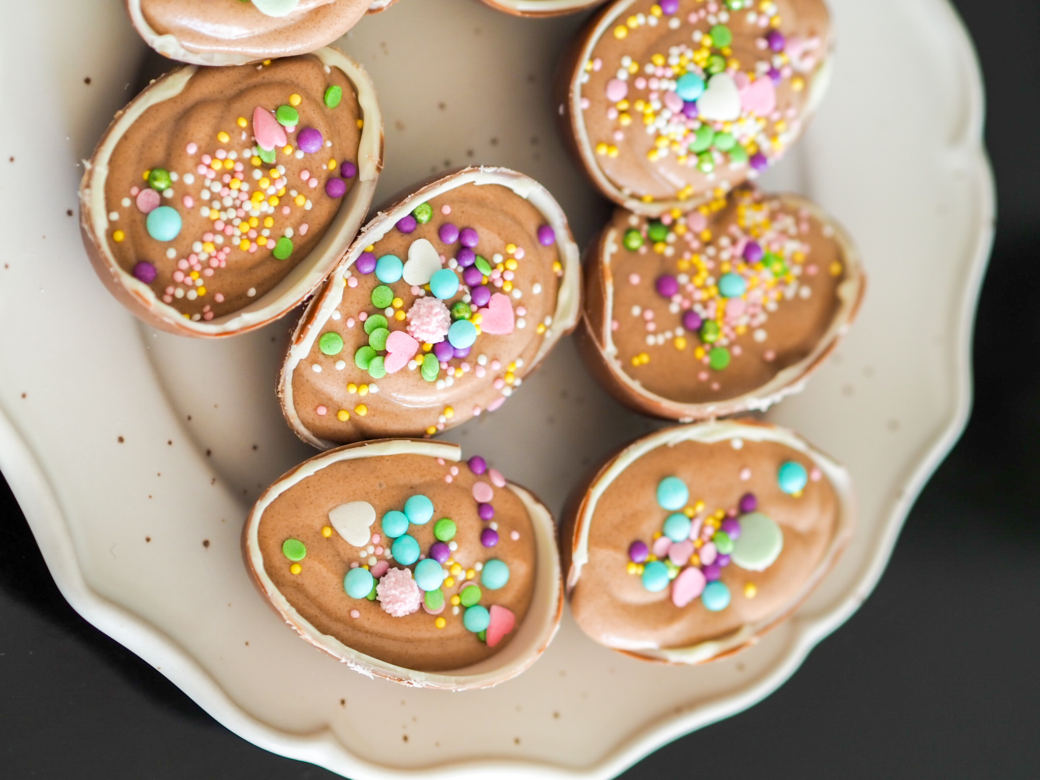 Lapset esitti jo tälle vuodelle tilauksen töhnämunista ja lupasin tehdä niitä. Tämä onkin ehkä sellainen lapsiperheelle sopiva herkku. Nämä ovat hauskoja ja tosi helppoja tehdä. Näihin tarvittiin vain kolmea erilaista ainesta.