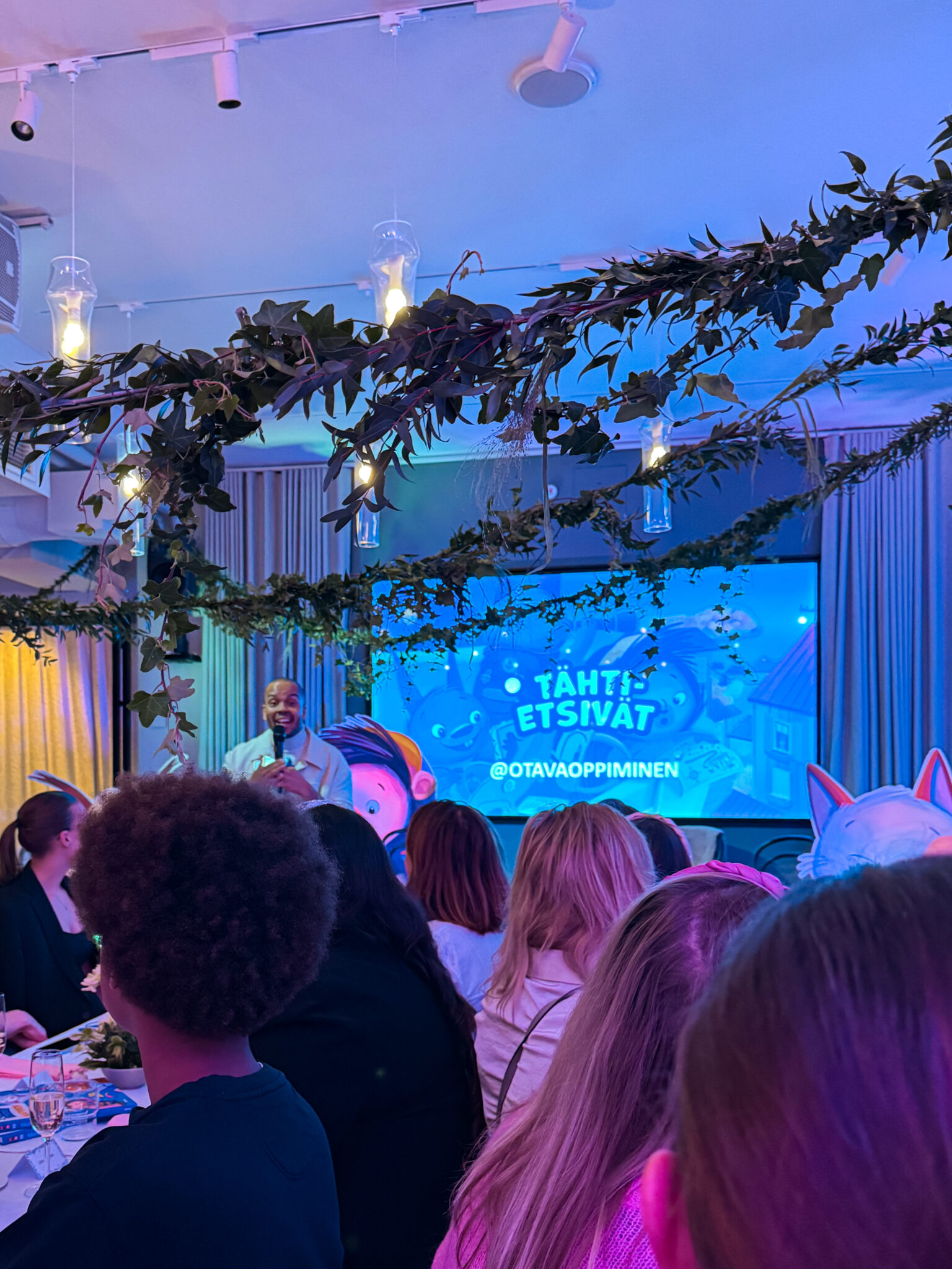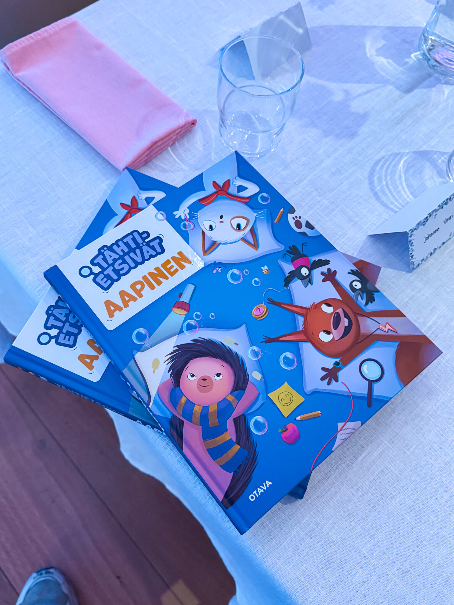 Tässä hetki sitten olin juhlimassa myös Otavan uusinta Tähtietsivät aapista. Tilaisuudessa tutustuttiin muun muassa kuvittajan työhön ja muisteltiin omia aapisia. Googlasin myös oman aapiseni 90-luvulta ja löysinkin siitä pari kuvaa. Tässä kyseisessä tilaisuudessa mietin taas sitä, että tämä työ on siinäkin mielessä aika hienoa, että koskaan ei tiedä kenen kanssa pääsee istumaan samaan pöytään. Tässä tilaisuudessa istuin nimittäin HP Parviaisen (Duudsonit) kanssa. Olen nuorena katsonut veljieni kanssa Duudsoneita, eikä silloin tullut kyllä mieleen, että päätyisin vuosikymmeniä myöhemmin samaan pöytään juhlimaan aapisen julkistusta. Elämä on kyllä ihmeellistä.