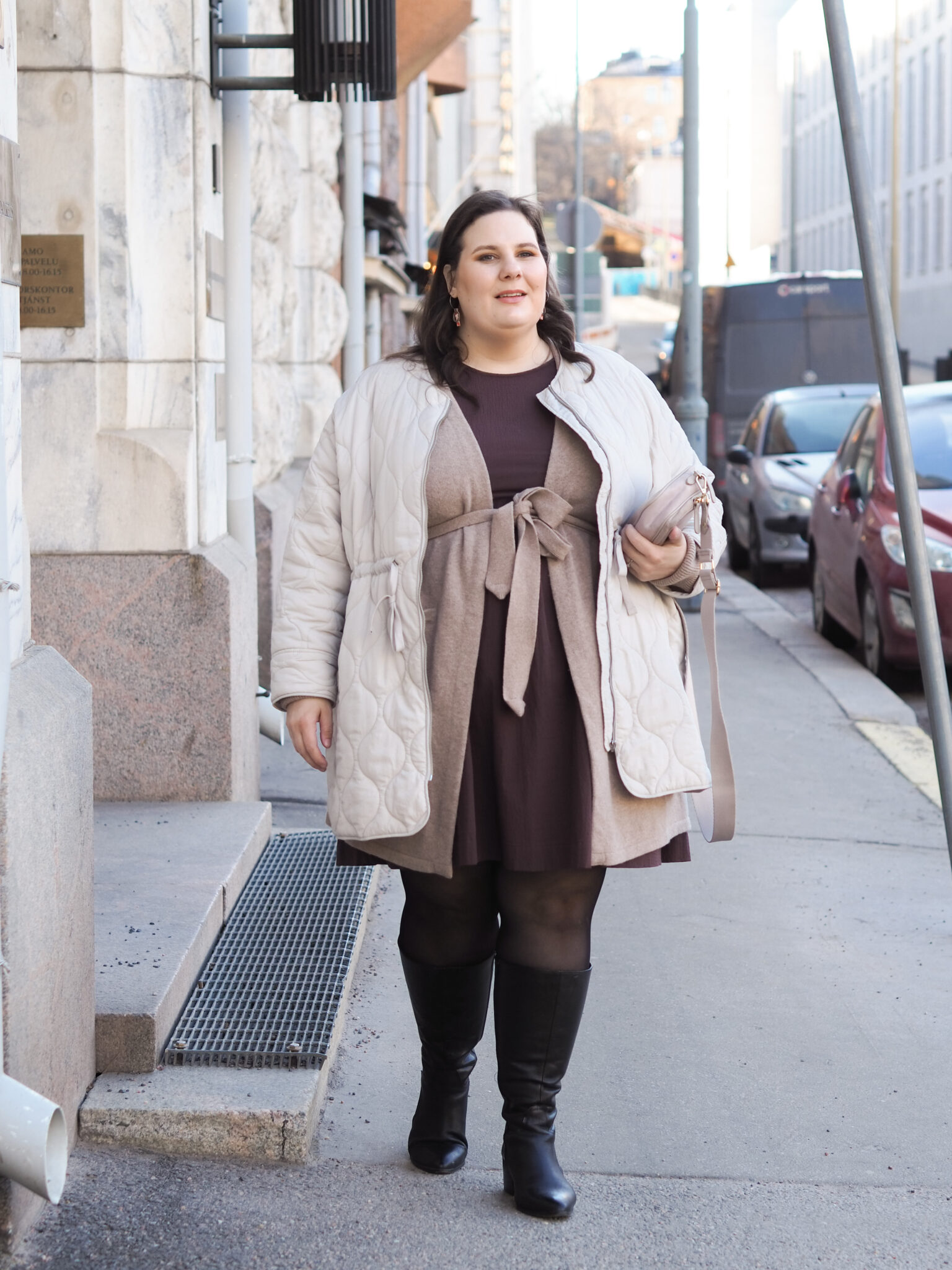 Valmistaudutaan mekkokeleihin: Kaunis, ruskea mekko kotimaiselta brändiltä