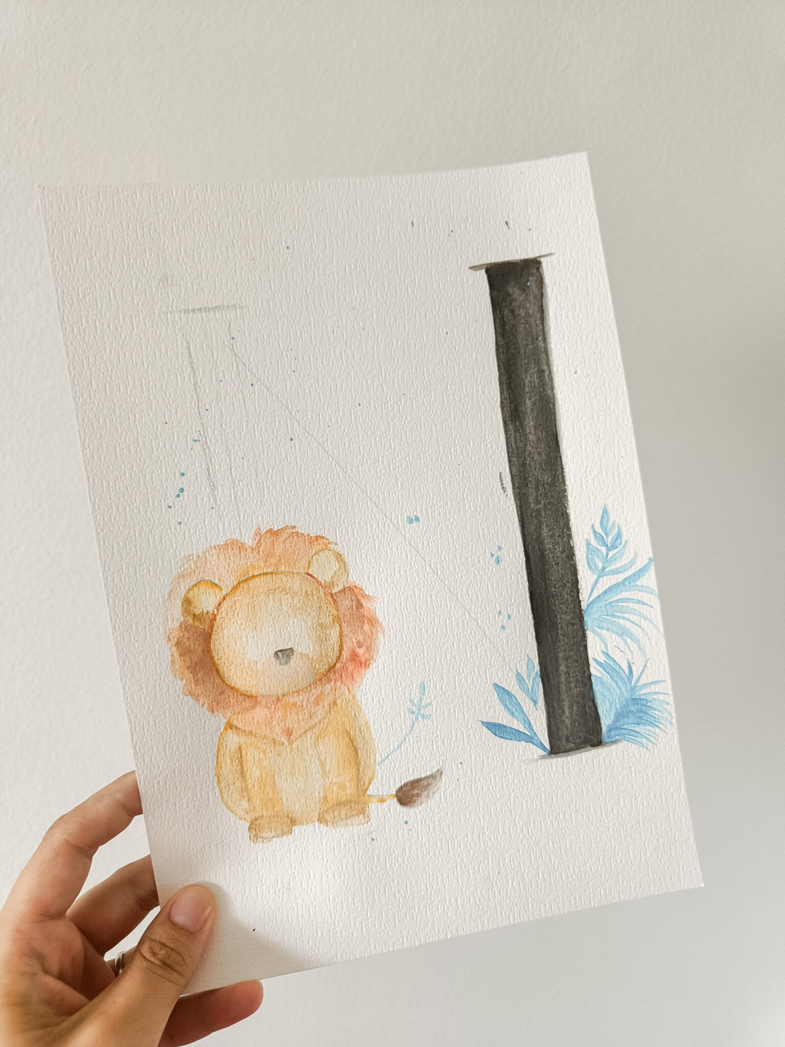Valmistaudutaan parhaillaan taaperon syntymäpäiväjuhliin. Innostuin maalaamaan vesiväreillä pientä taulua pöytäkoristeeksi tarjoilupöytään. Kuvaan tulee leijonanpentu n-kirjaimen edessä. Maalaaminen on aina vaatinut sellaista kärsivällisyyttä, jota minulla ei ole. Olen aina piirtänyt mieluummin, kuin maalannut. Vesivärit ovat tulleet kunnolla elämääni oikeastaan vasta näin aikuisiällä, kun olen oppinut nauttimaan maalaamisesta.